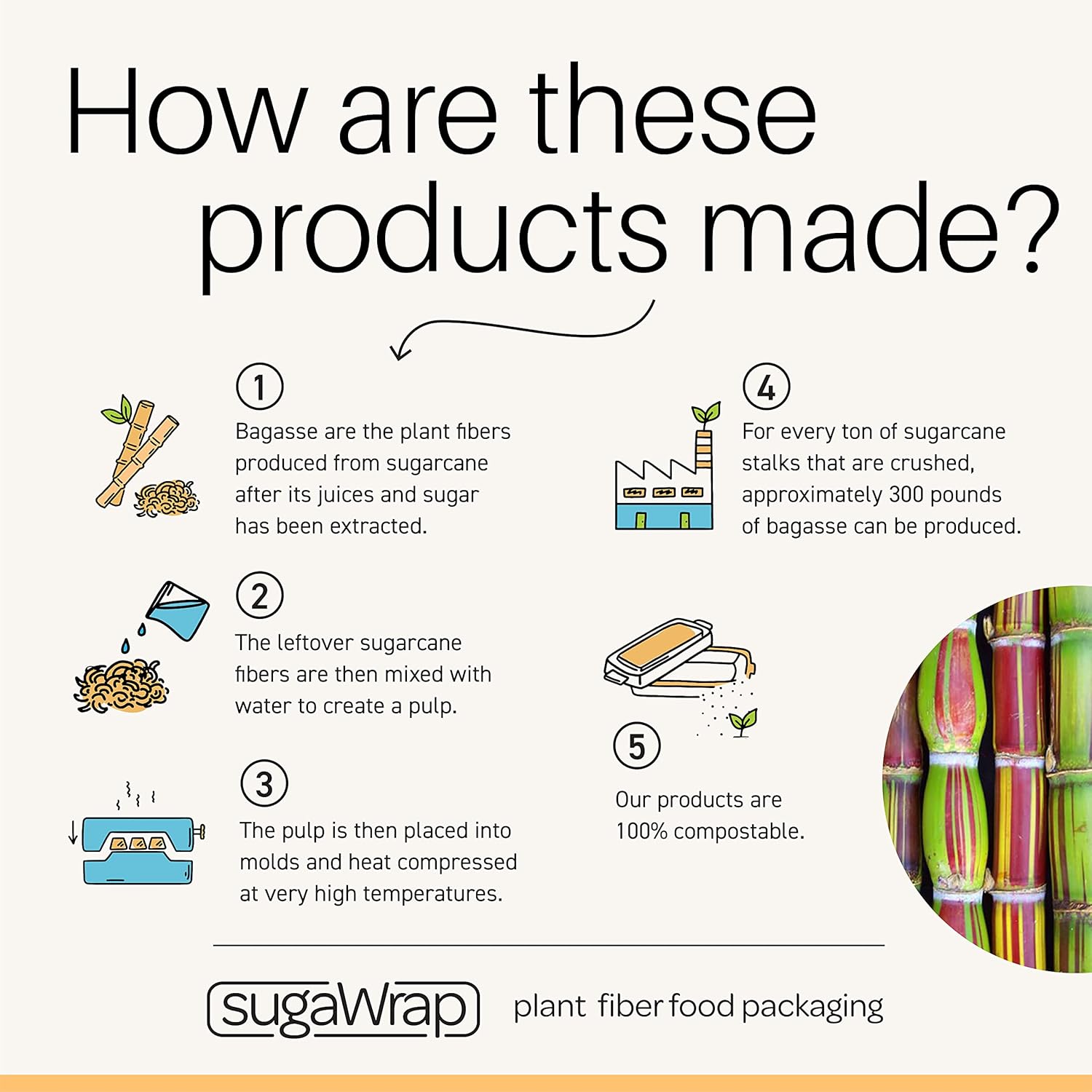 100% Made From Plants – Our oval bowls with lids are constructed entirely from bamboo and sugarcane fibers. These robust plants are grown in abundance throughout the world adding immensely to a healthy environment. SugaWrap plant-based products are a great alternative to plastic, styrofoam, and traditional food containers as they don’t contain any harmful additives and can be composted.