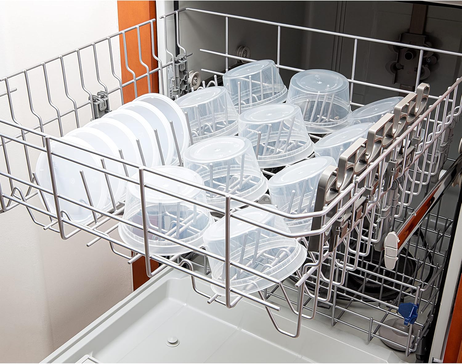 Pack of 40 – Durable heavy duty, BPA-free plastic deli container (12oz.). Containers and lids are microwave-safe, freezer-safe, top rack dishwasher safe, stackable and reusable