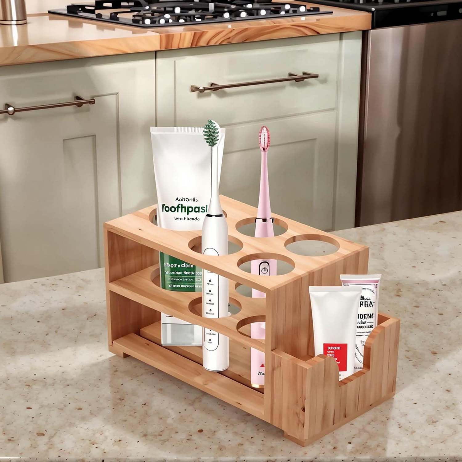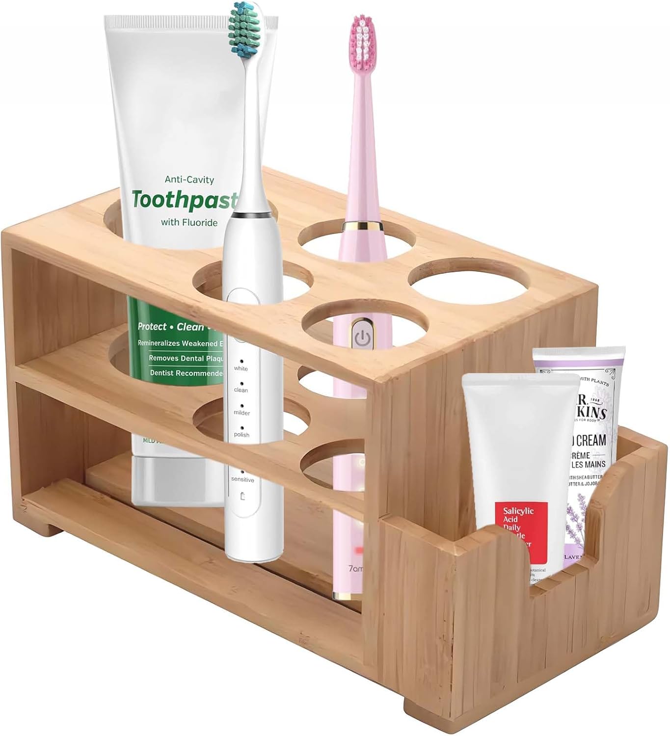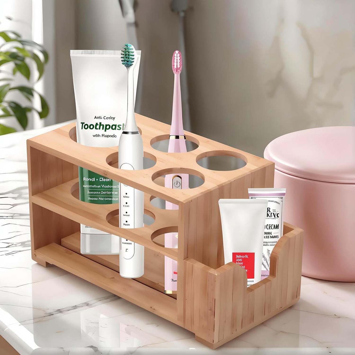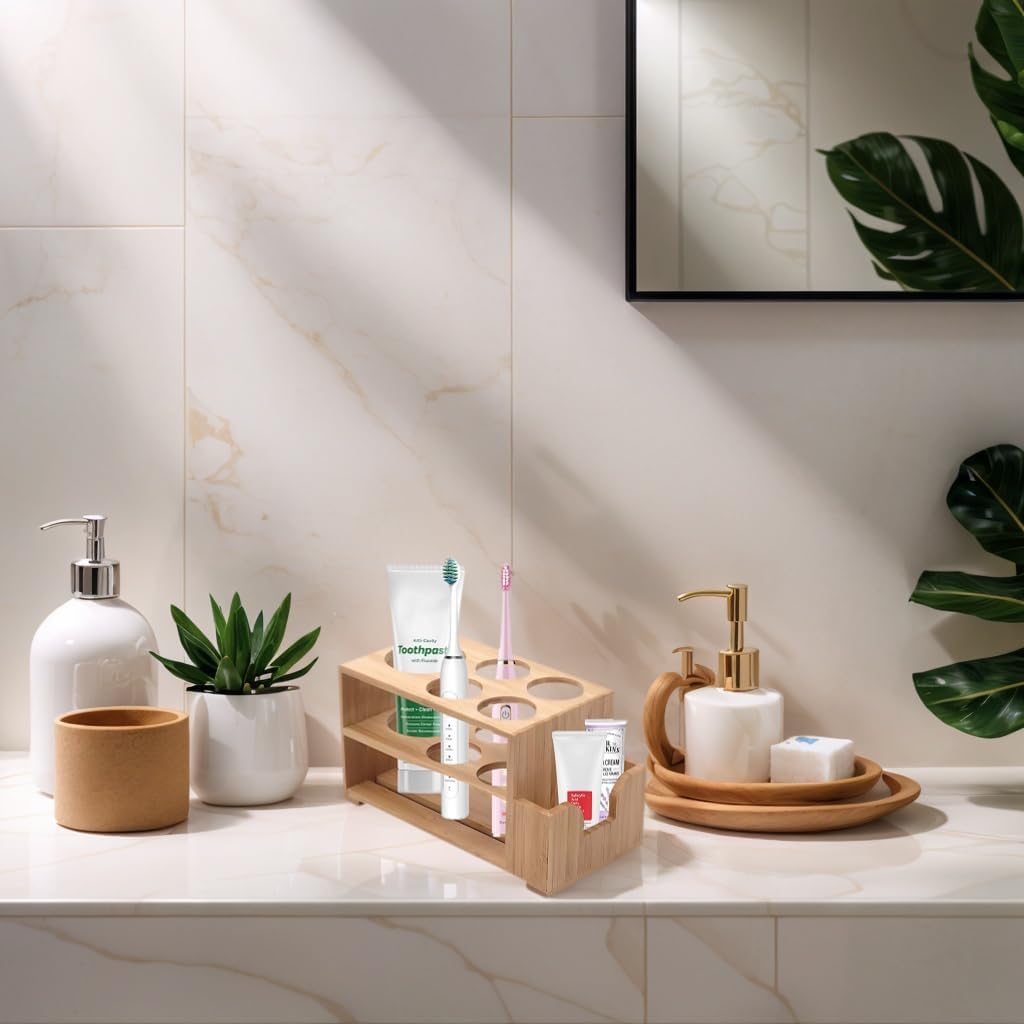Eco-Friendly Bamboo Toothbrush Holder – Durable Bathroom Organizer for Toothbrushes, Toothpaste, Razors, Makeup Brushes, and Accessories