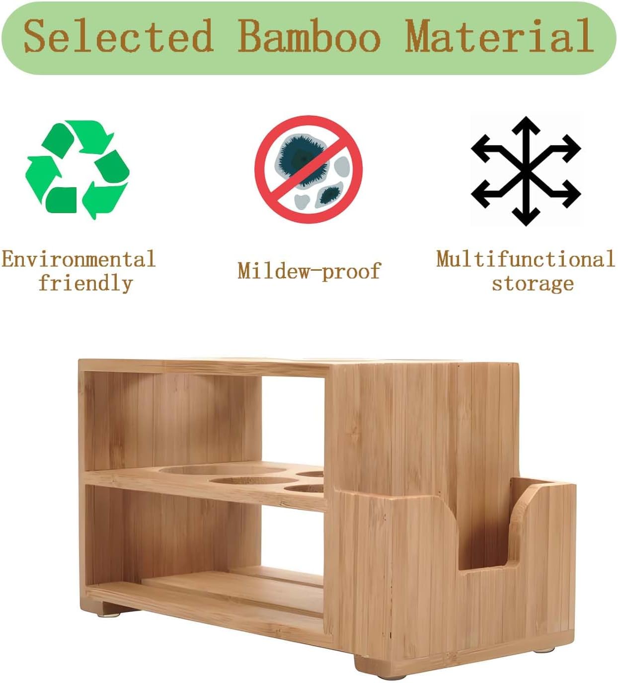 Compact & Stylish Countertop Organizer: Its natural bamboo finish adds a warm, modern touch to any bathroom décor, while the space-saving design maximizes storage without taking up extra room.
