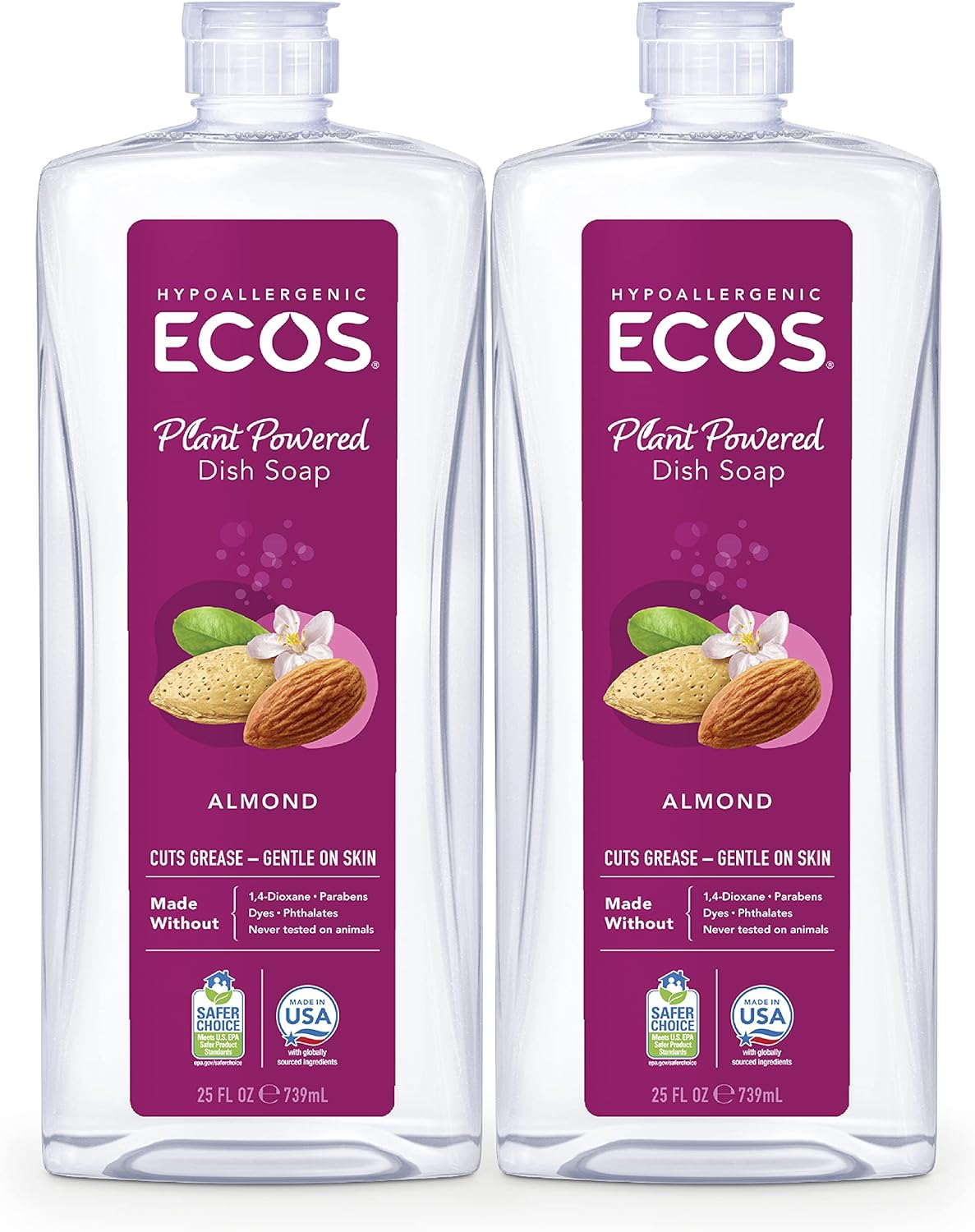 ECOS® Hypoallergenic Dish Soap, Natural Almond, 25oz by Earth Friendly Products (Pack of 2)