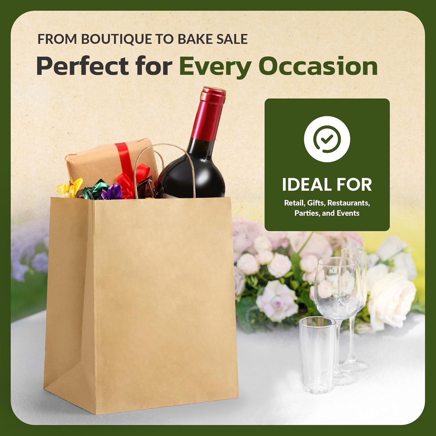 Ready-to-Use Paper Shopping Bags: No more damaged bags and wasted inventory! Each set of kraft paper bags arrives in protective packaging to help maintain shape and keep the brown kraft bags clean and crisp for immediate use.