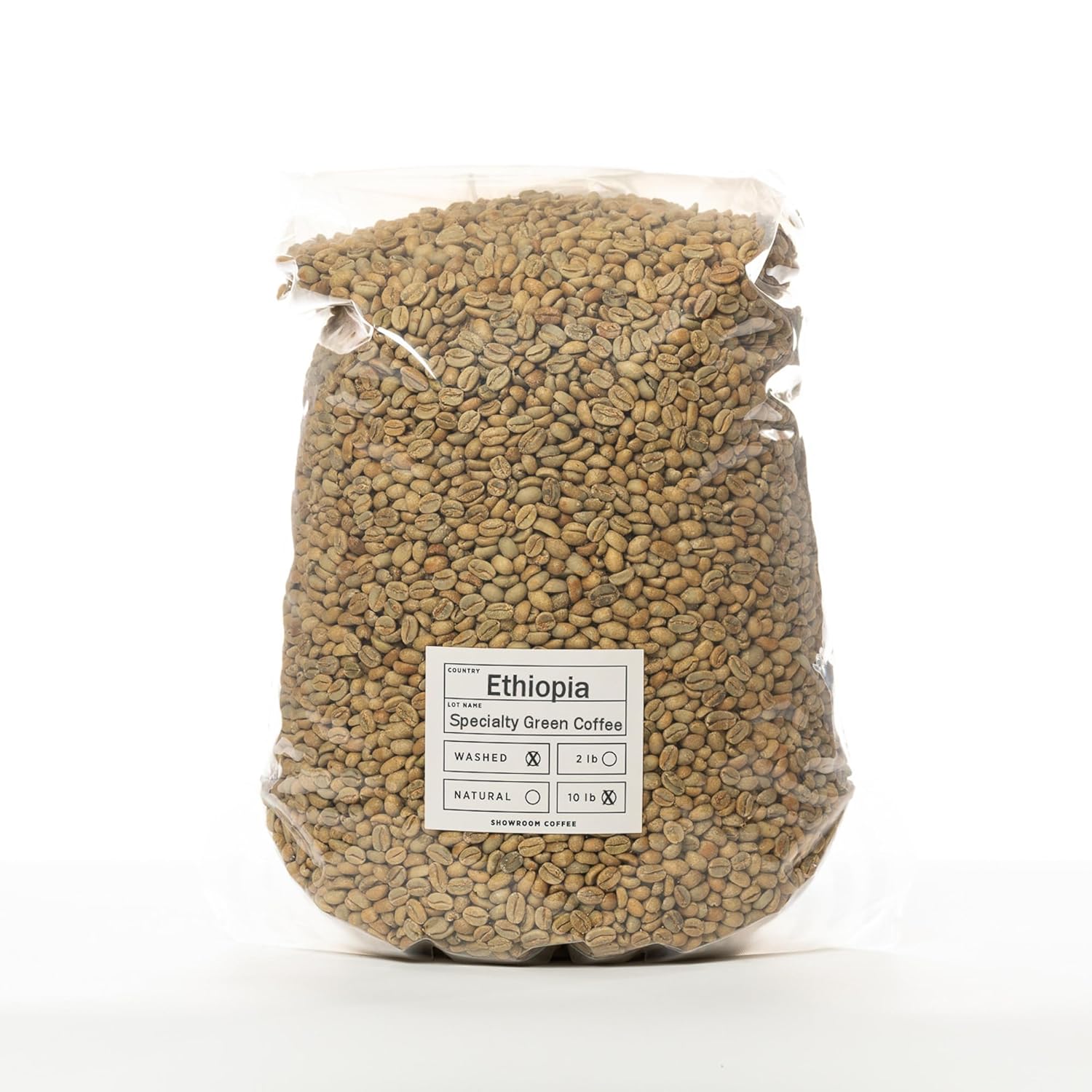 Single Origin Specialty Grade Ethiopia green coffee beans. Green coffee is unroasted, and requires roasting prior to brewing and consumption.