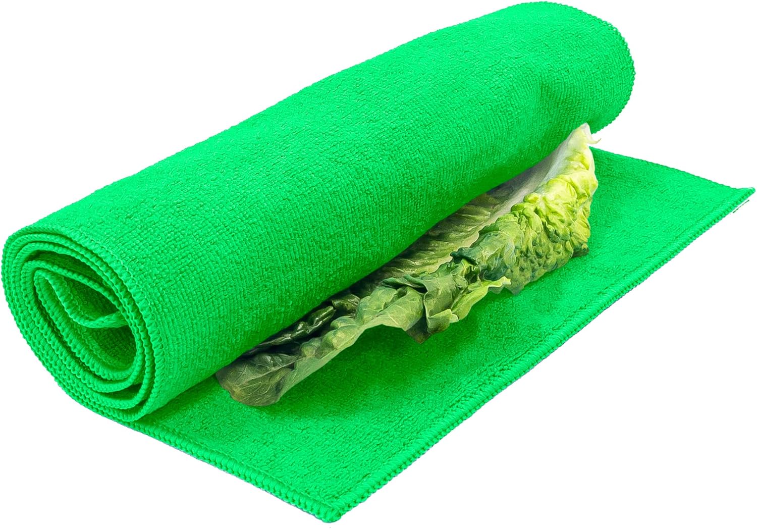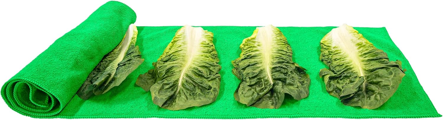 Eurow Microfiber Lettuce Wrap Towels, Ultra Absorbent Terry Weave Vegetable Drying Cloths, Reusable Kitchen Towels for Greens, Herbs, Produce, Space-Saving Alternative,12″ x 42″, Green, 2-Pack