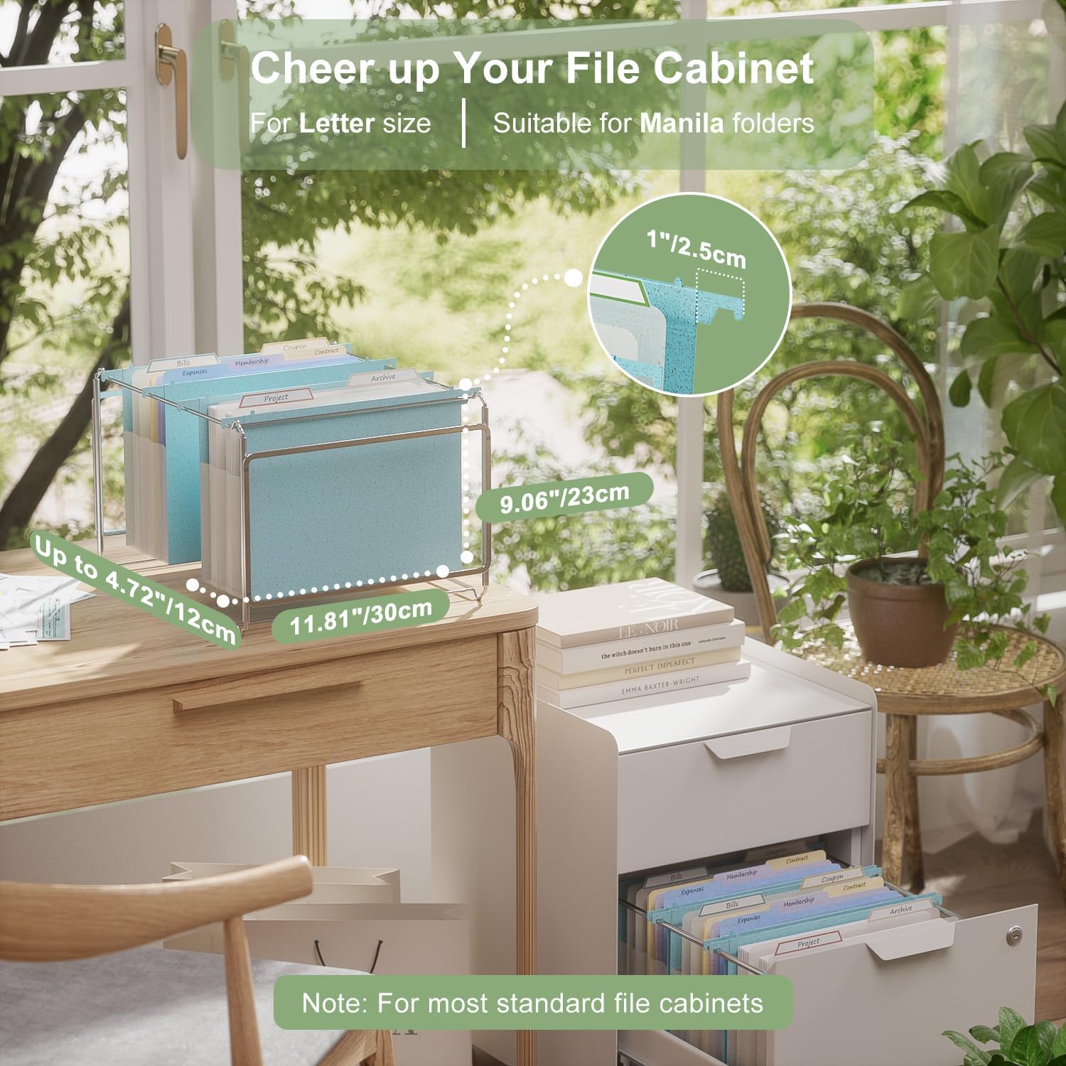 EXPANDABLE POCKET, LARGE CAPACITY:This wheat straw expanding hanging file folder features a single pocket with a bottom that expands up to 4.72″(12cm). Designed for Letter-size files and most standard file cabinets (L: 11.81″/30cm, H: 9.06″/23cm, fits MANILA folders). The extended 1″/2.5 cm hooks adapt to more file cabinets. The expandable design grows with your files, preventing wear and tear.