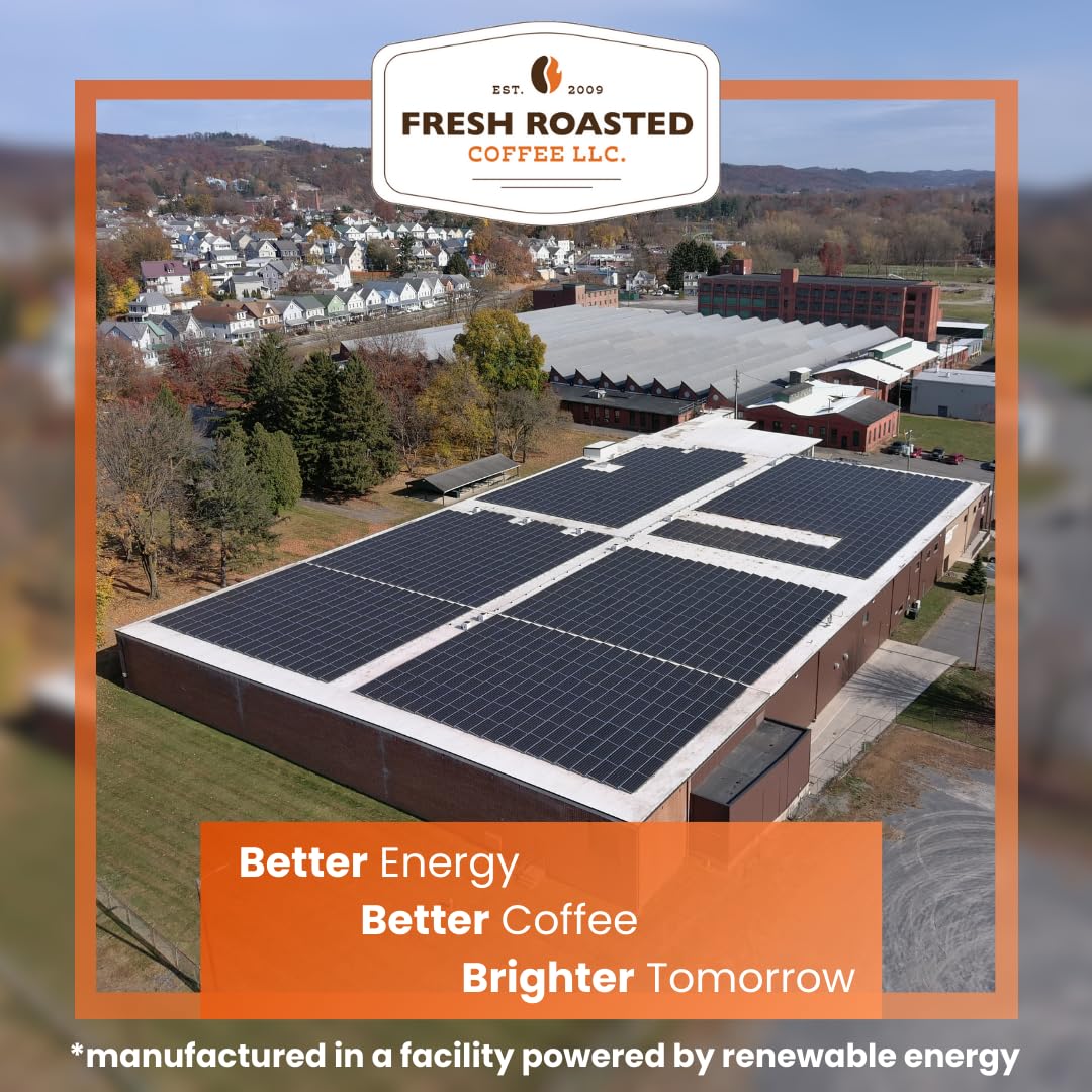 Fresh Roasted Coffee is raising the bar for sustainability in the coffee industry. By harnessing the power of solar energy, we’re not only reducing our carbon footprint but also leading the way in renewable energy and environmentally responsible business practices. Together, we’re brewing a brighter, greener future — one cup at a time.