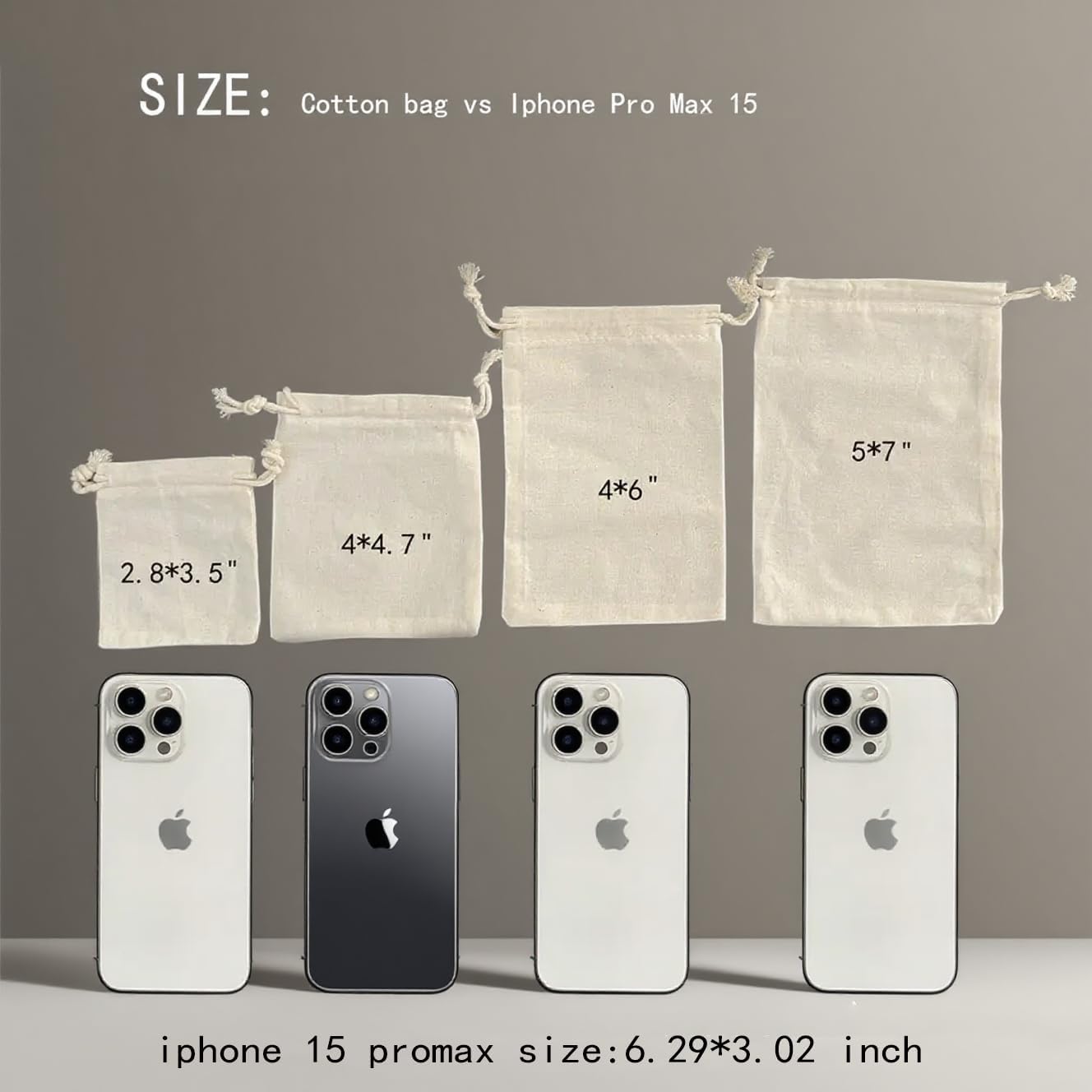 gobyhumm 50 Pieces Pure Cotton Drawstring Bags Muslin Bags Sachet Bag for Home Supplies (5 * 7″)