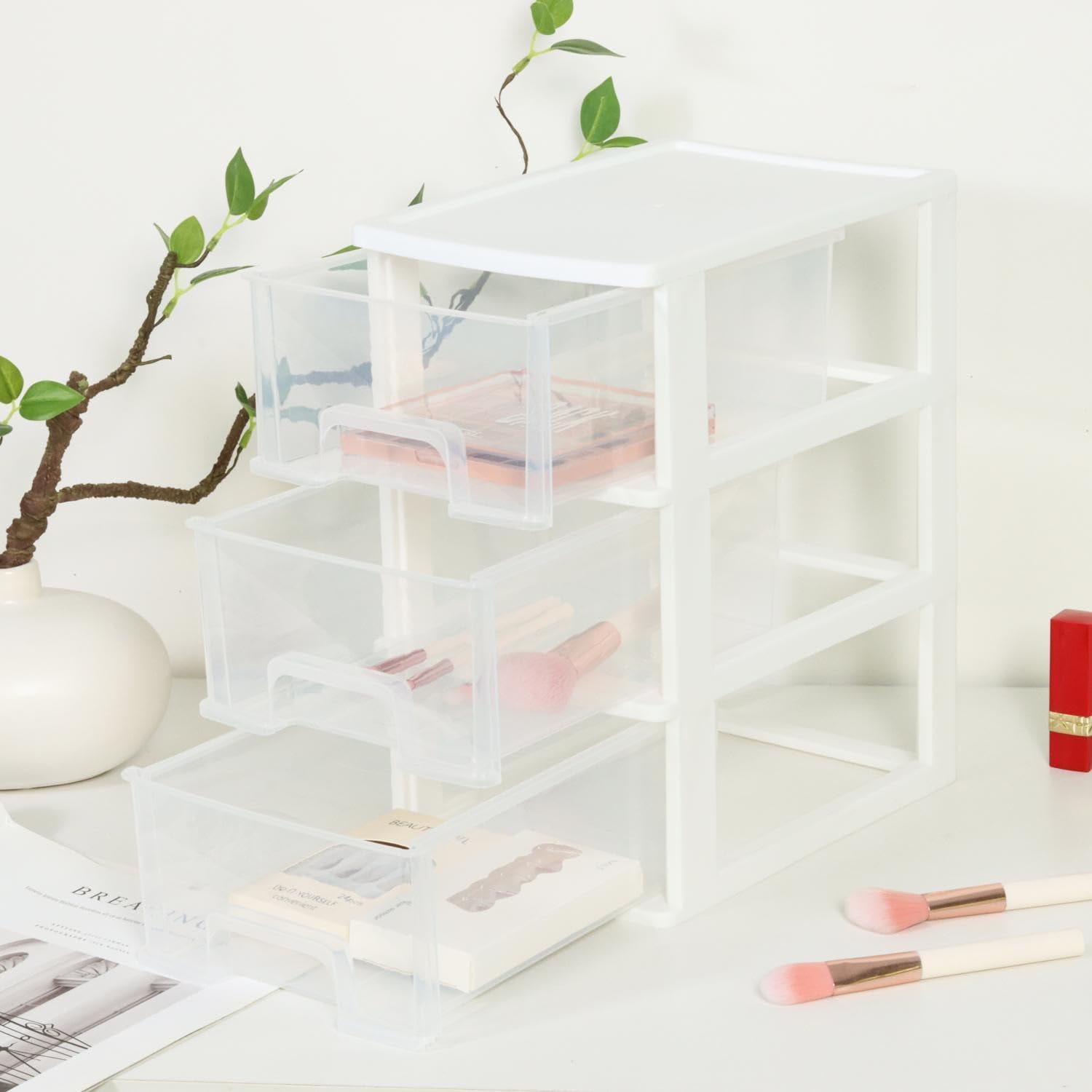 Gonice 3 Drawer Storage Organizer, White Plastic Drawer Storage, Small Desktop Organizer for Home, Office