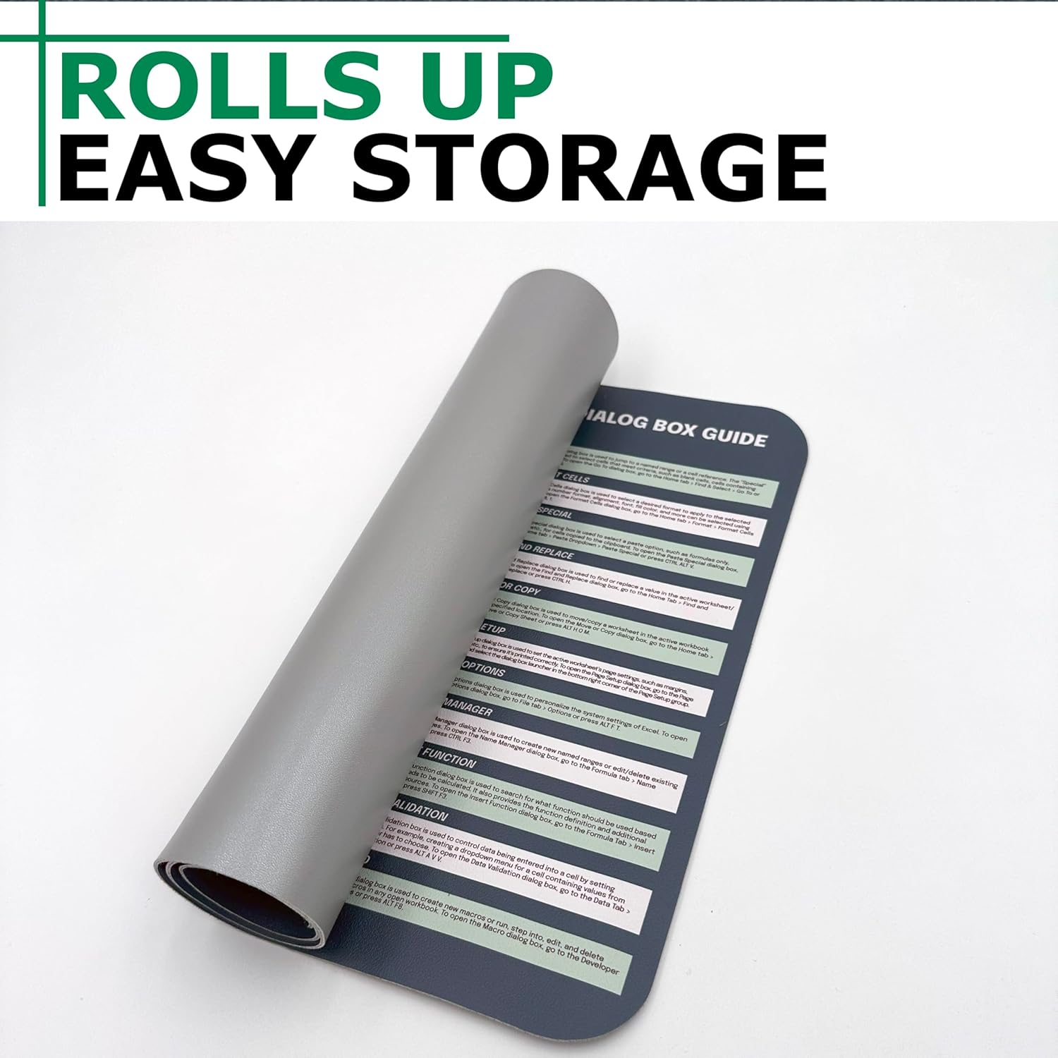 Eco-Friendly Material: Crafted from vegan leather, this deskpad is not only durable but also environmentally conscious. The googlesheets cheat sheet desk pad provides a sustainable office gift option without compromising on quality or functionality.