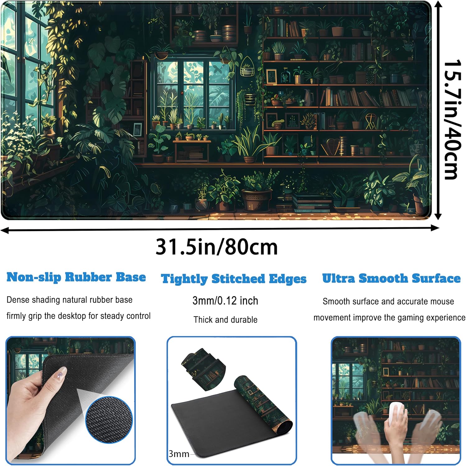 Green Plant Desk Pad Gaming Pad Extra Large Desk Mats Full Desk Mouse Pad XXL, Desktop Mat Computer Laptop Keyboard Pads, Office Home Decor Table Pad Cute Desk Accessories 31.5″ x 15.7″