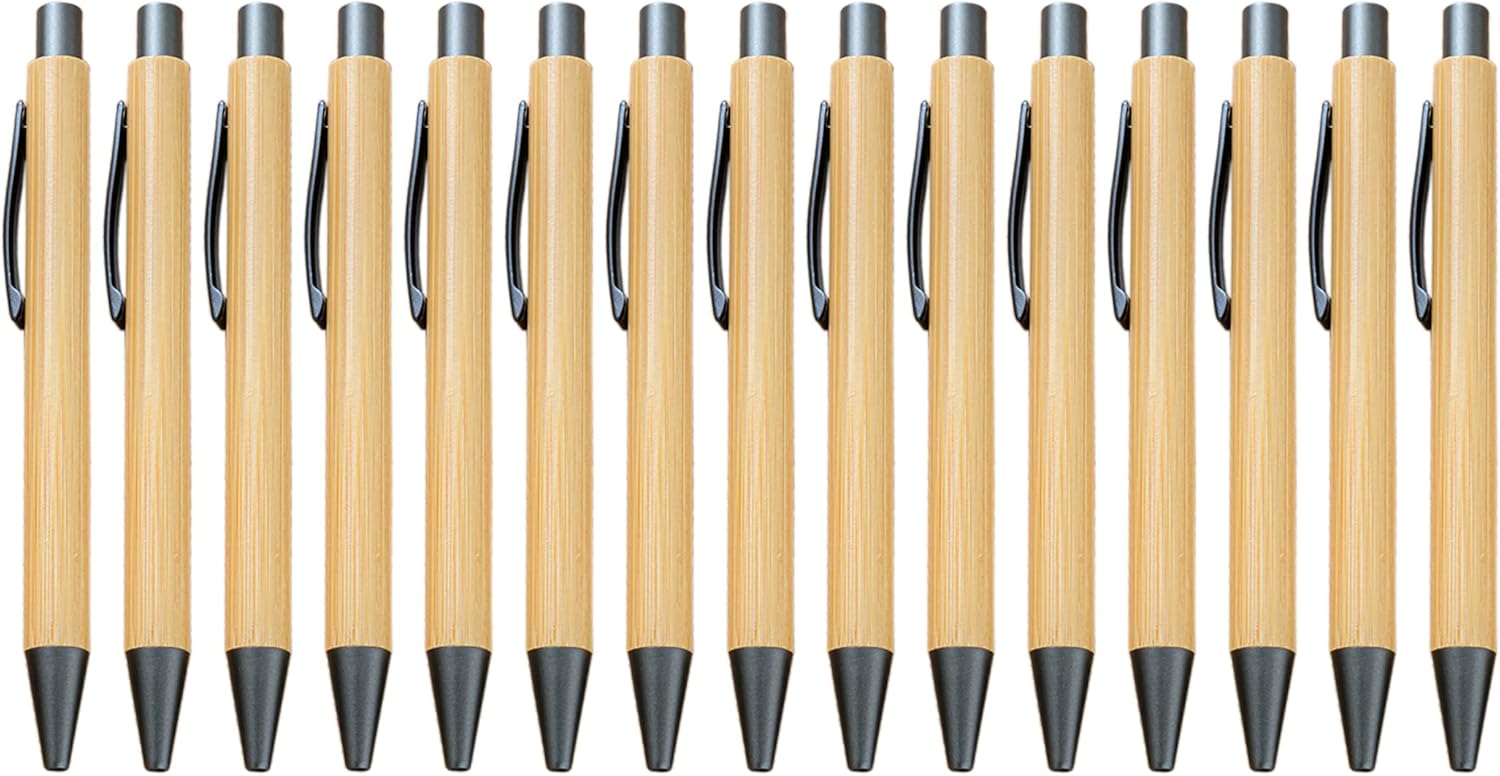 Gullor Natural Bamboo Retractable Ballpoint Pen, Sustainable Pens for Journaling Writing Office Supplies Eco Friendly Pens, 15 Pieces