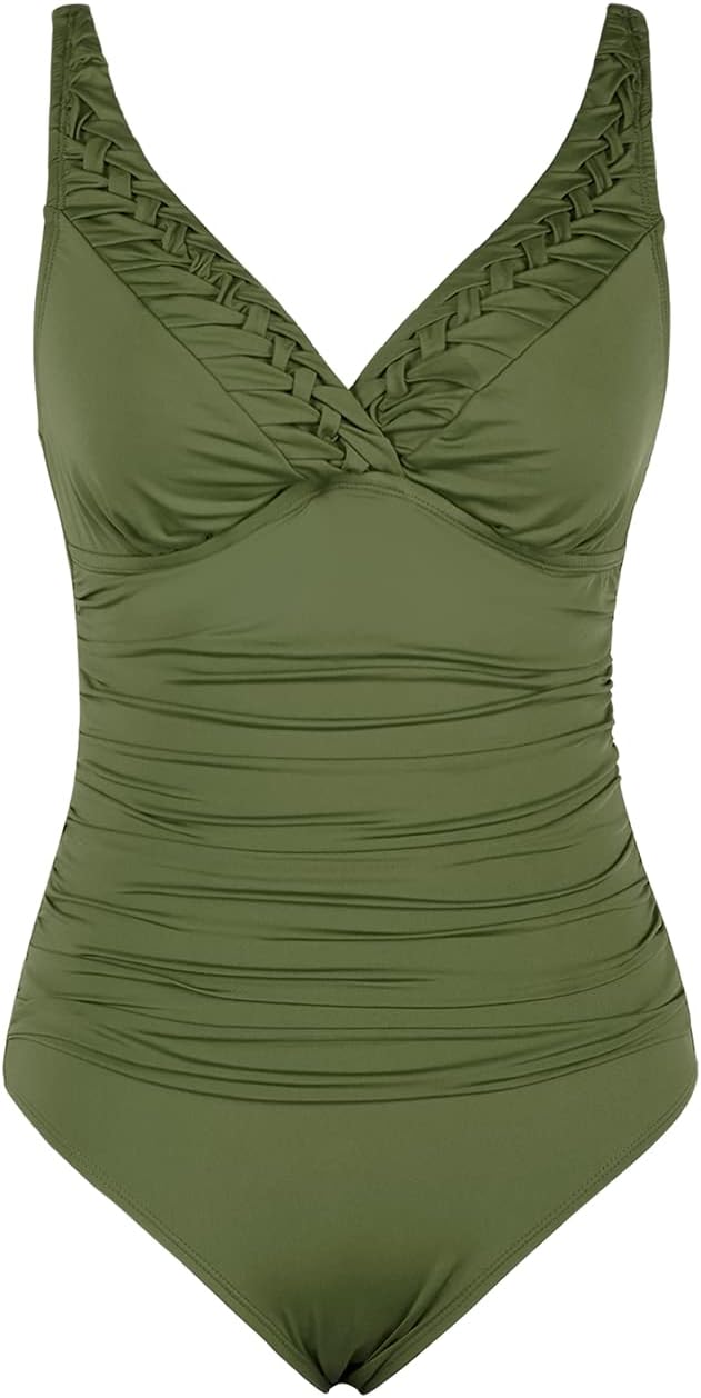 Hilor Women’s Tummy Control Swimsuits Slimming One Piece Bathing Suits Pin Tucked Surplice Swimwear