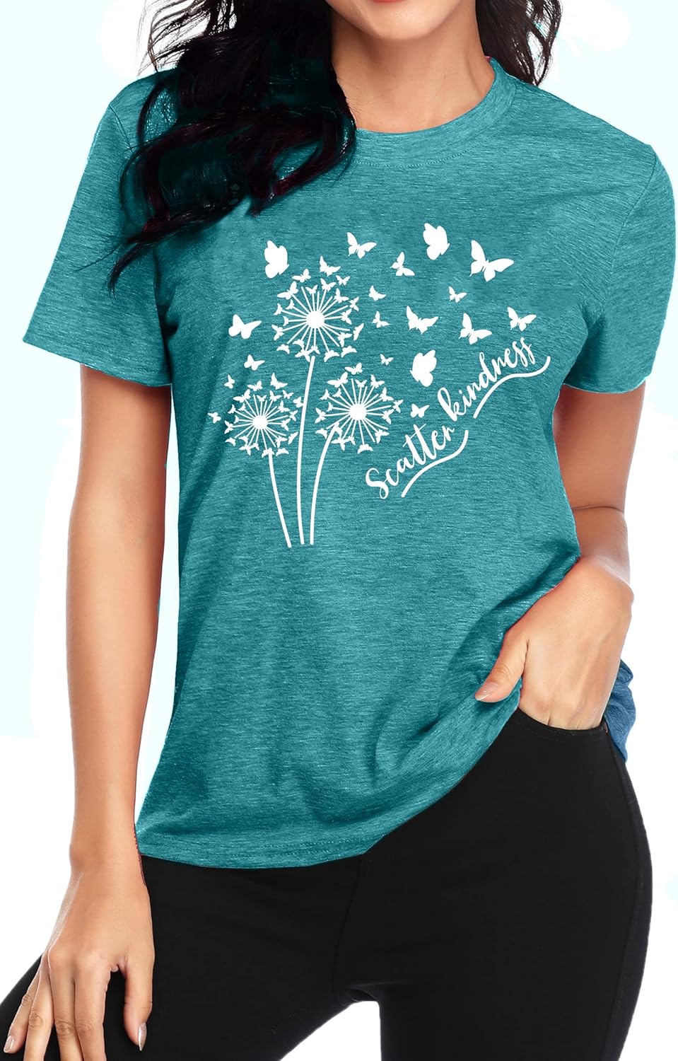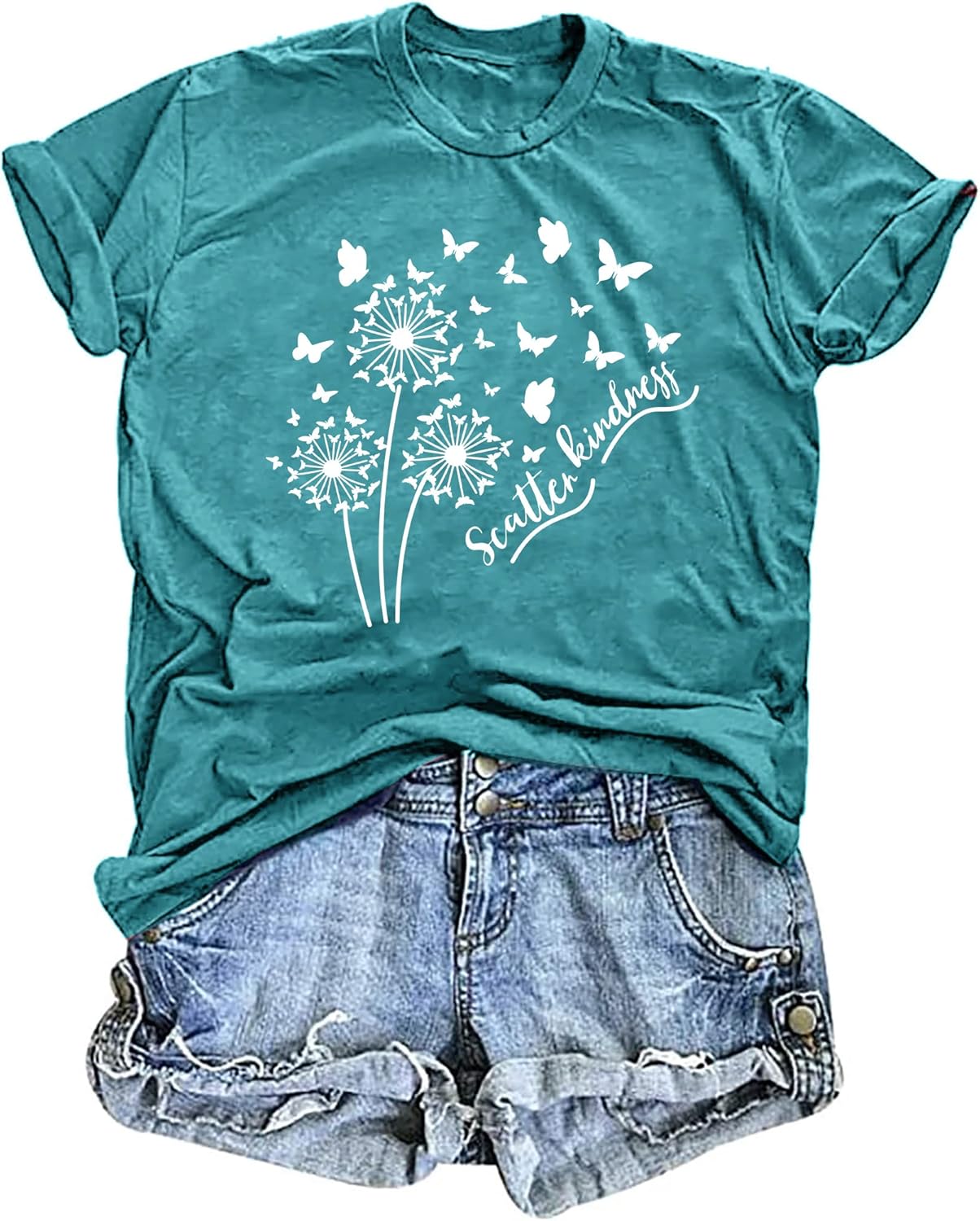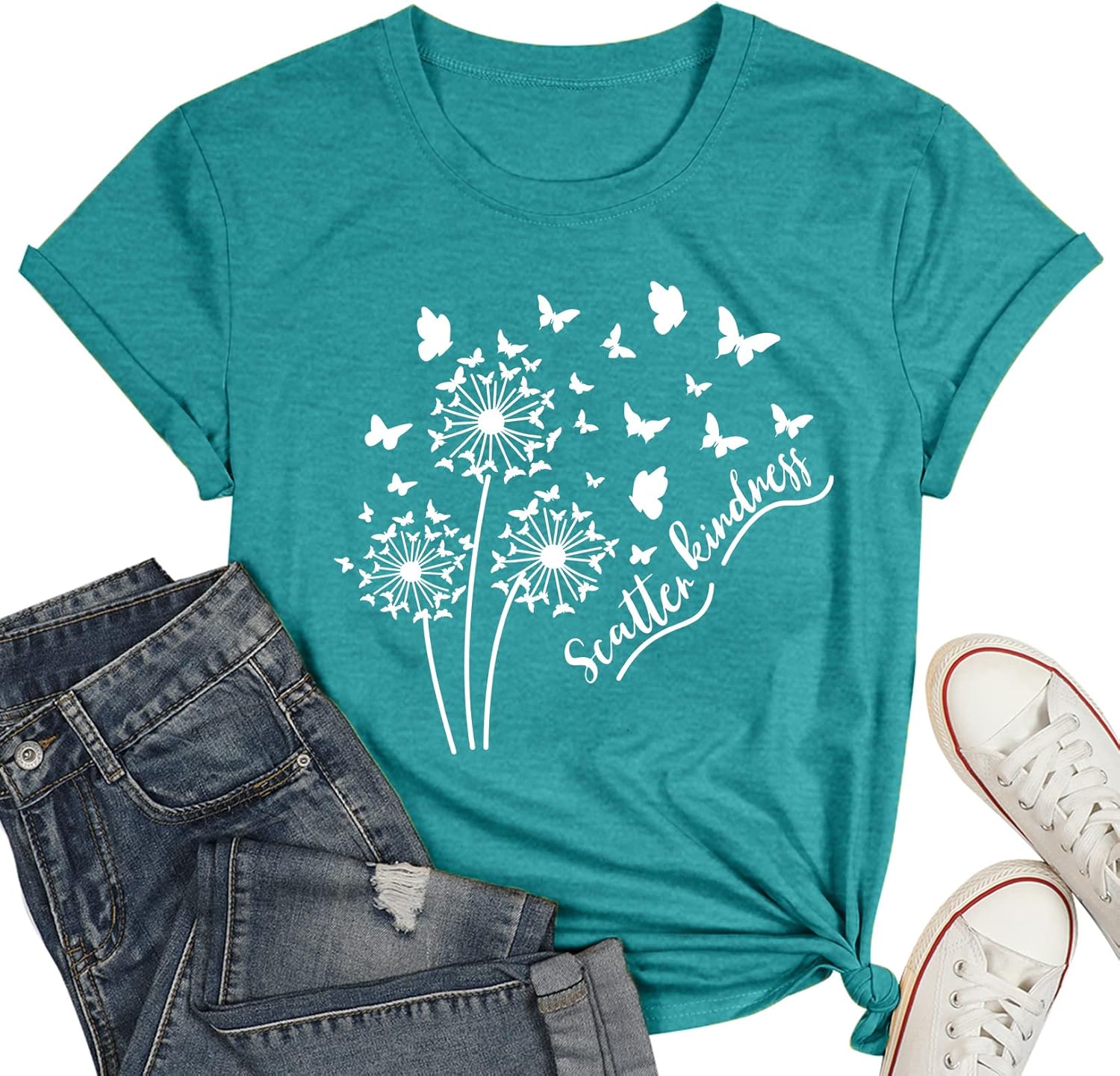 hohololo Dandelion Shirt Women Inspirational Graphic Tee Spread Kindness Tshirt Women’s Funny Cute Flower Tops