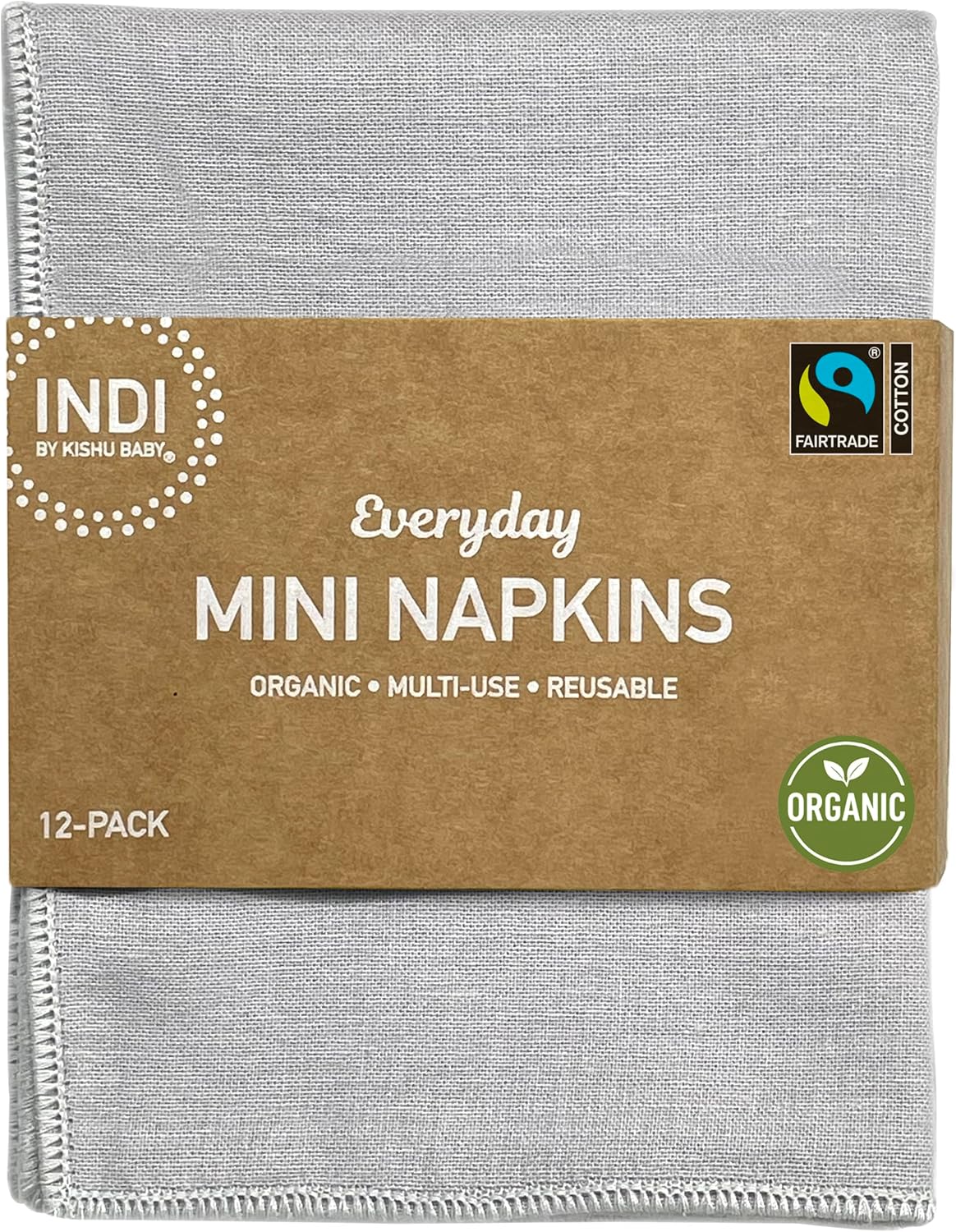 Be the first to review “Indi by Kishu Baby – Fairtrade Certified 100% Organic Cotton Muslin Washable Mini Cloth Napkin Sets – Set of 12 Soft Reusable Napkins for All Occasions (Cool Gray)”