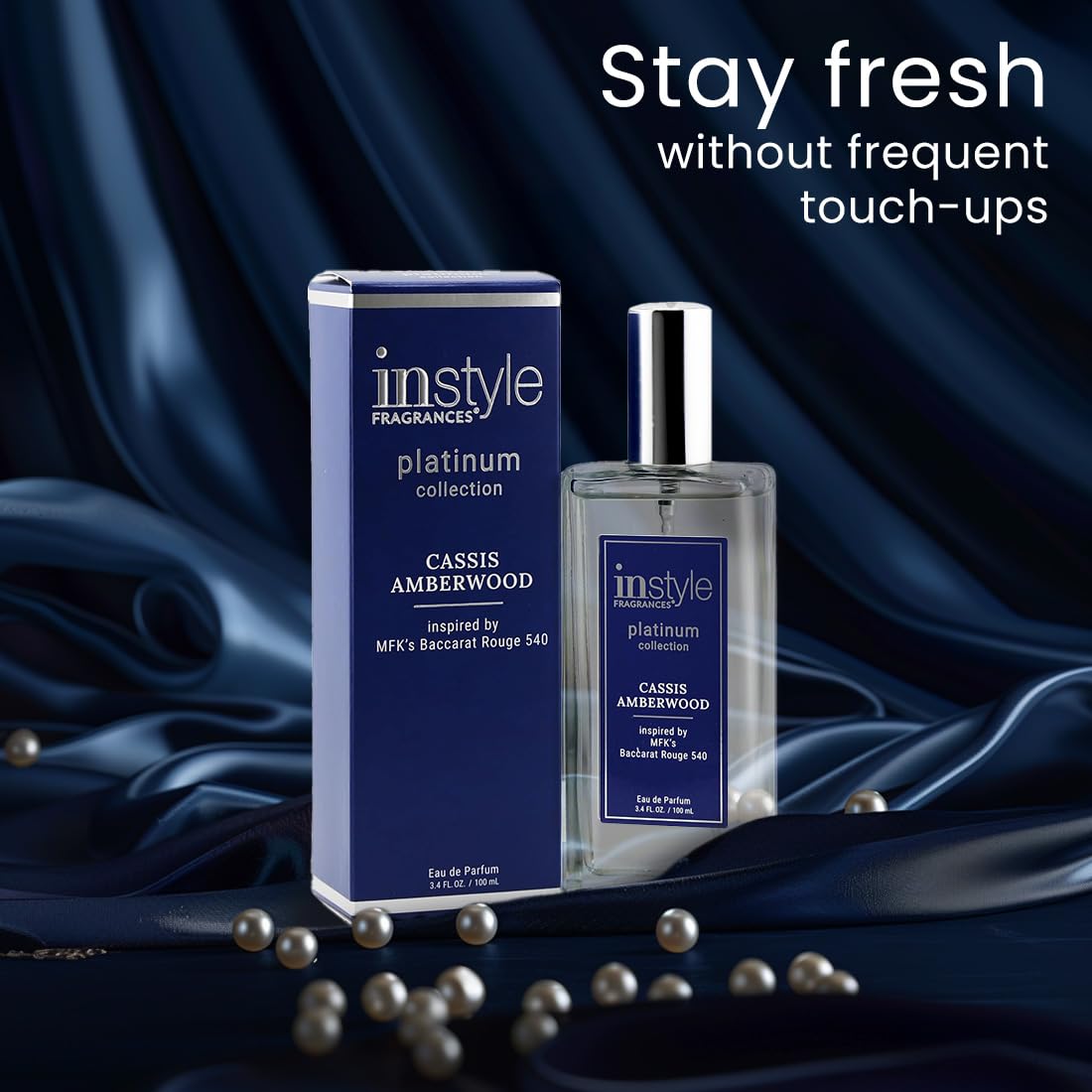 Instyle Fragrances, Platinum Collection, Cassis Amberwood, Inspired by MFK’s Baccarat Rouge 540, Women’s Eau de Parfum, CLEAN, Vegan, Paraben-Free, Never Tested on Animals, 3.4 Fluid Ounces