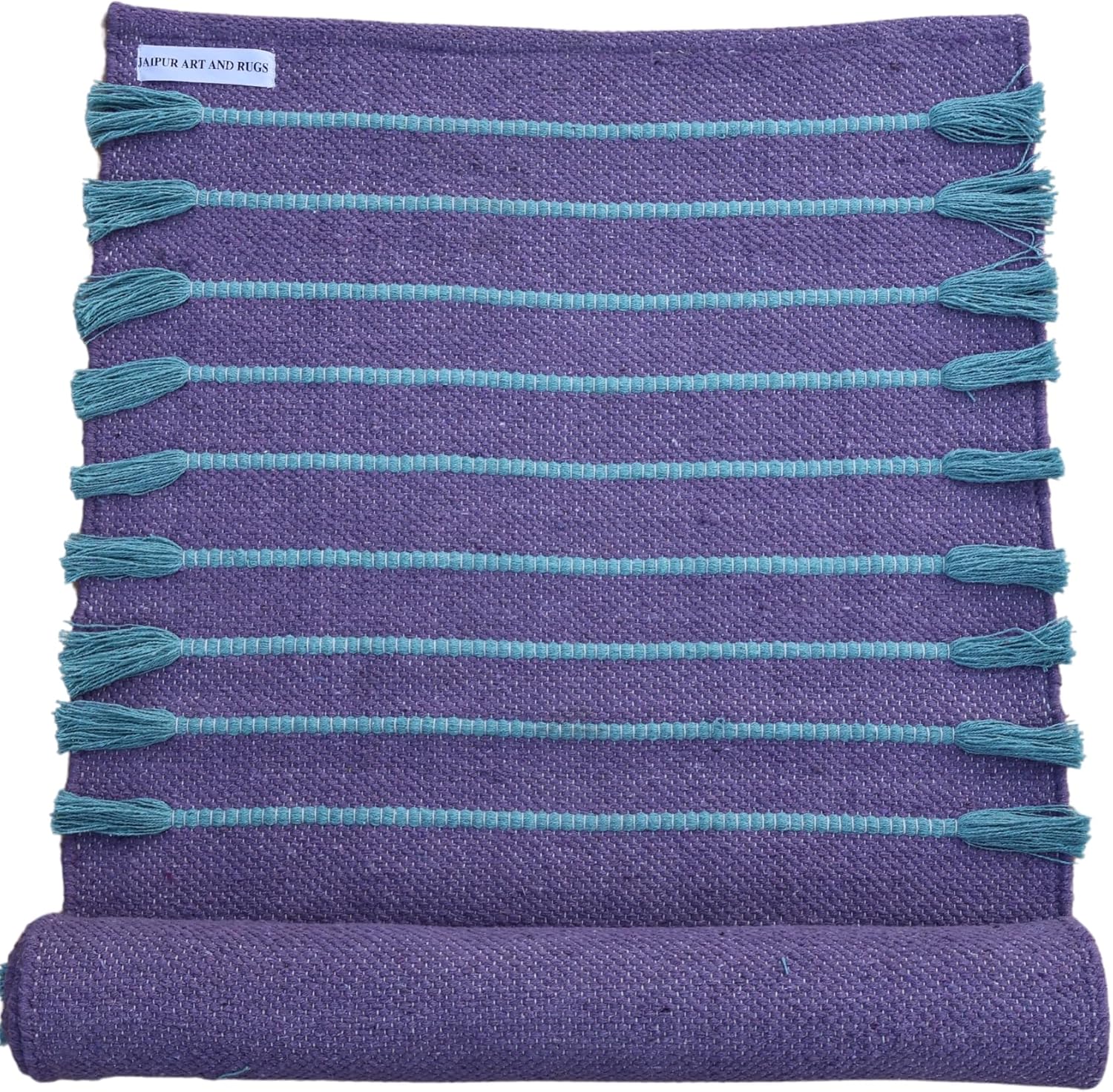 Jaipur art & Rugs Organic Cotton Yoga Mat – Eco-Friendly Hand-Woven Rug – Non Slip & Thick (24”x72”x5mm) for Everyday Fitness at Home – Comfortable Extra-Long