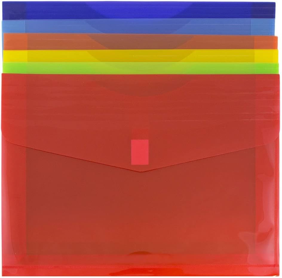 JAM PAPER Plastic Expansion Envelopes with Hook & Loop Closure – Letter Booklet – 9 3/4 x 13 with 2 Inch Expansion – Assorted Colors – 6/Pack