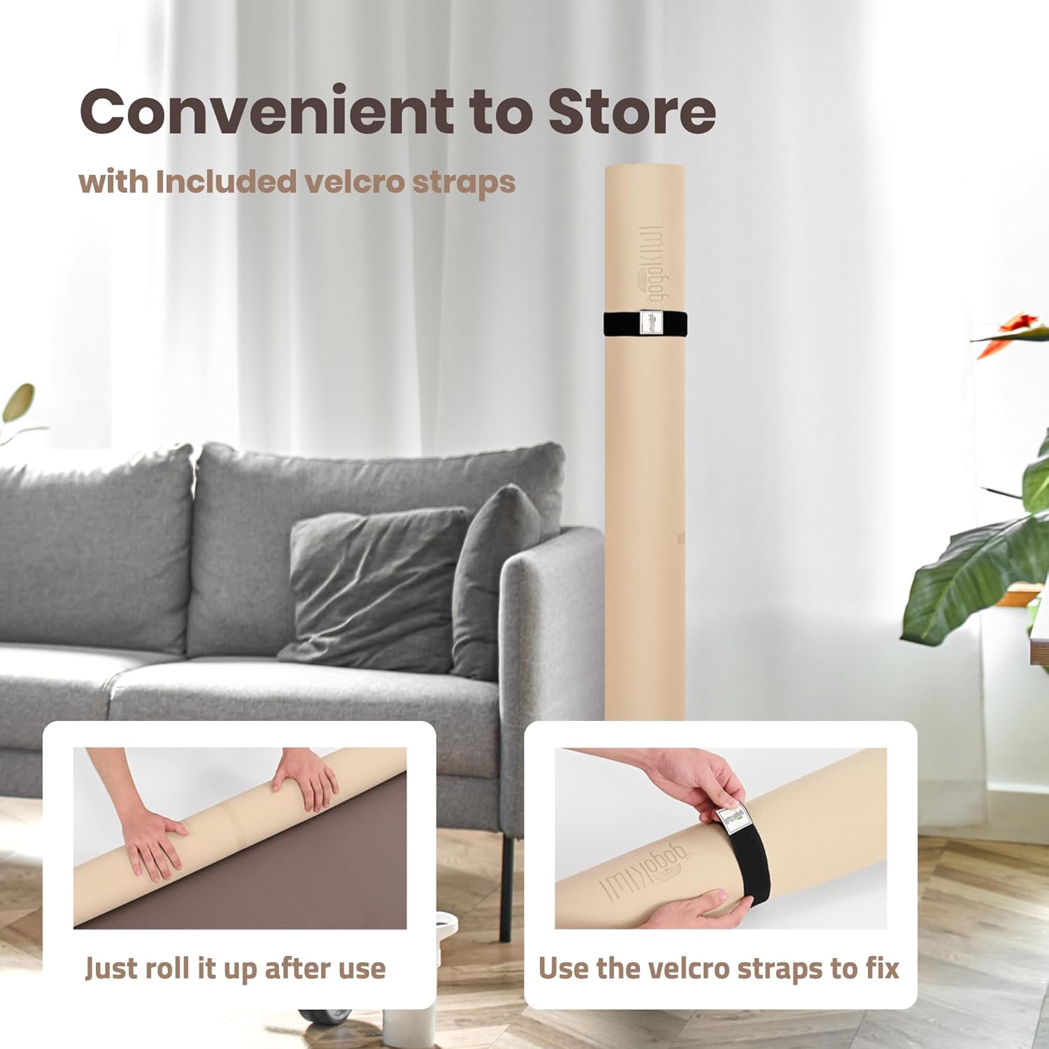 【Easy Cleaning & Convenient Storage 】Thanks to its closed-cell material, our large exercise mat prevents sweat absorption, making it easy to clean and maintain for long-term use. Additionally, it comes with velcro straps for hassle-free storage