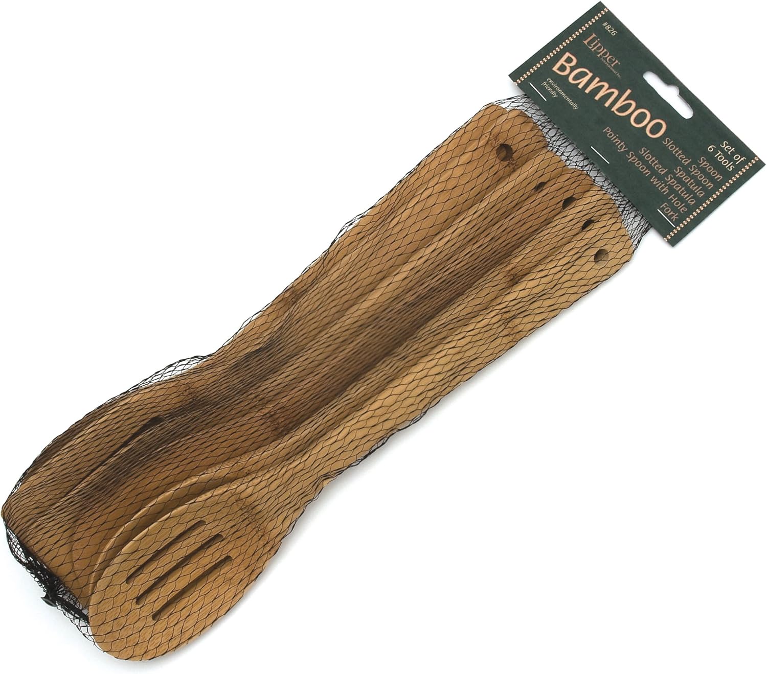 Lipper International 826 Bamboo Wood Kitchen Tools in Mesh Bag, 6-Piece Set