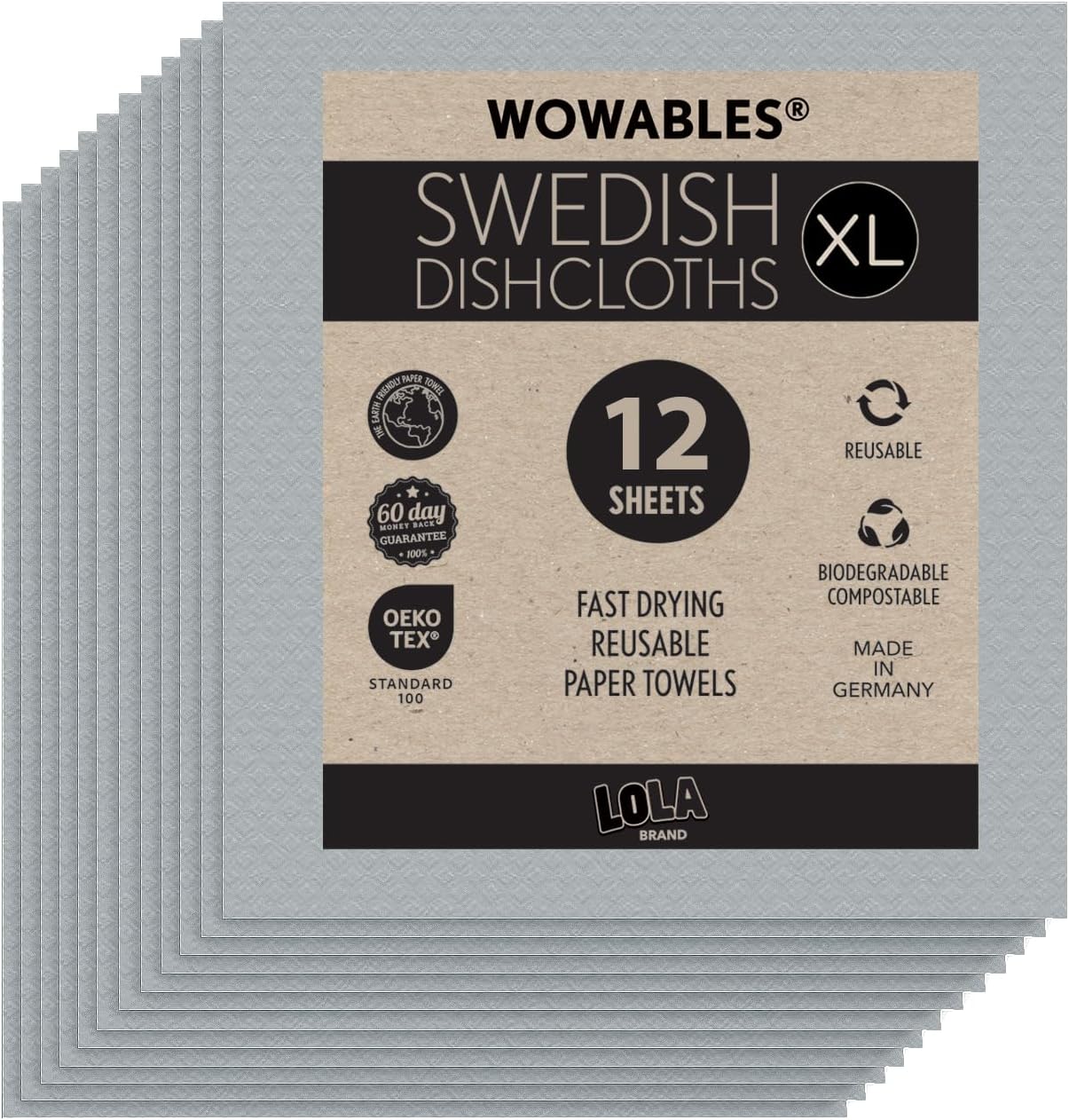 Be the first to review “LOLA Wowables XL Swedish Dishcloths, 12 Reusable Eco Cleaning Cloths, 11″ x 10″, Ultra Absorbent Cellulose Sponge Towel, Compostable, Made in Germany”