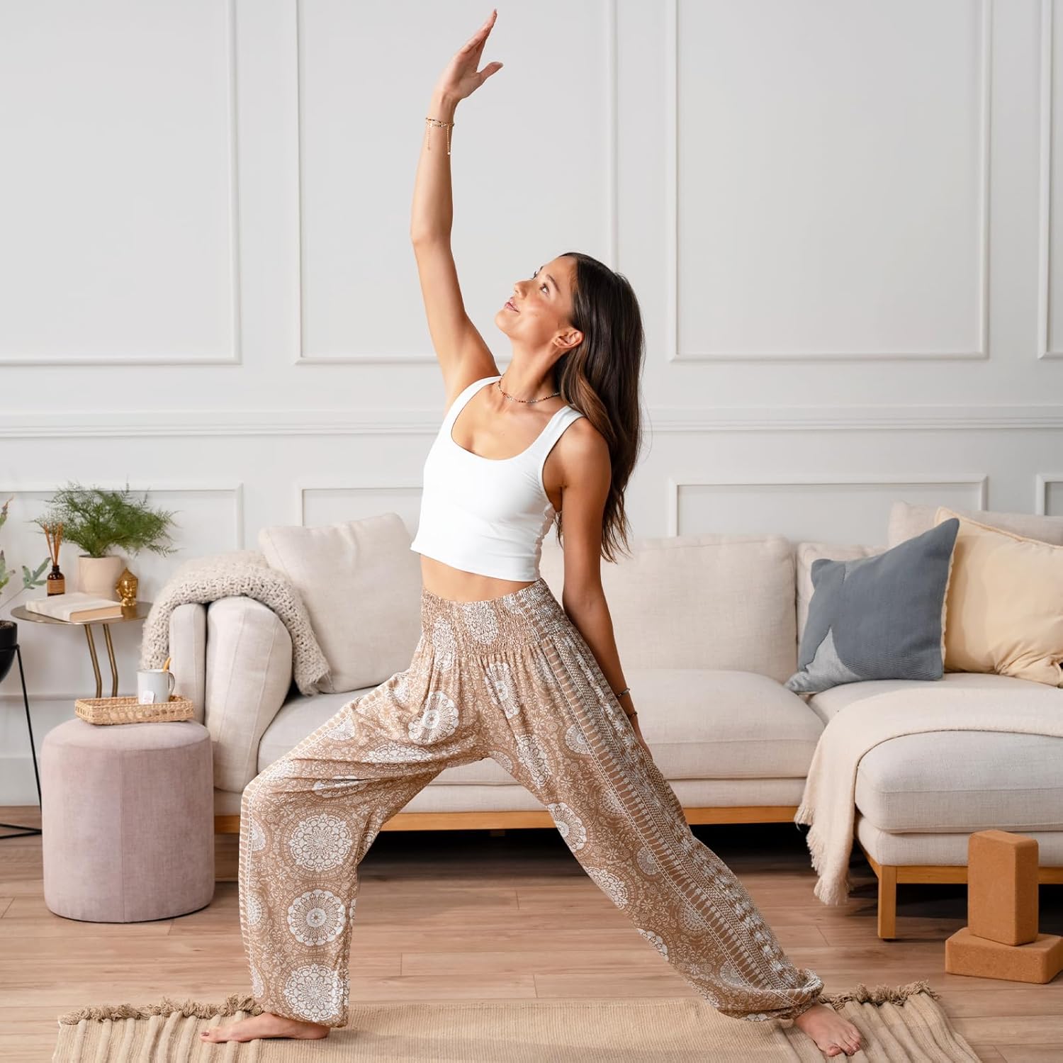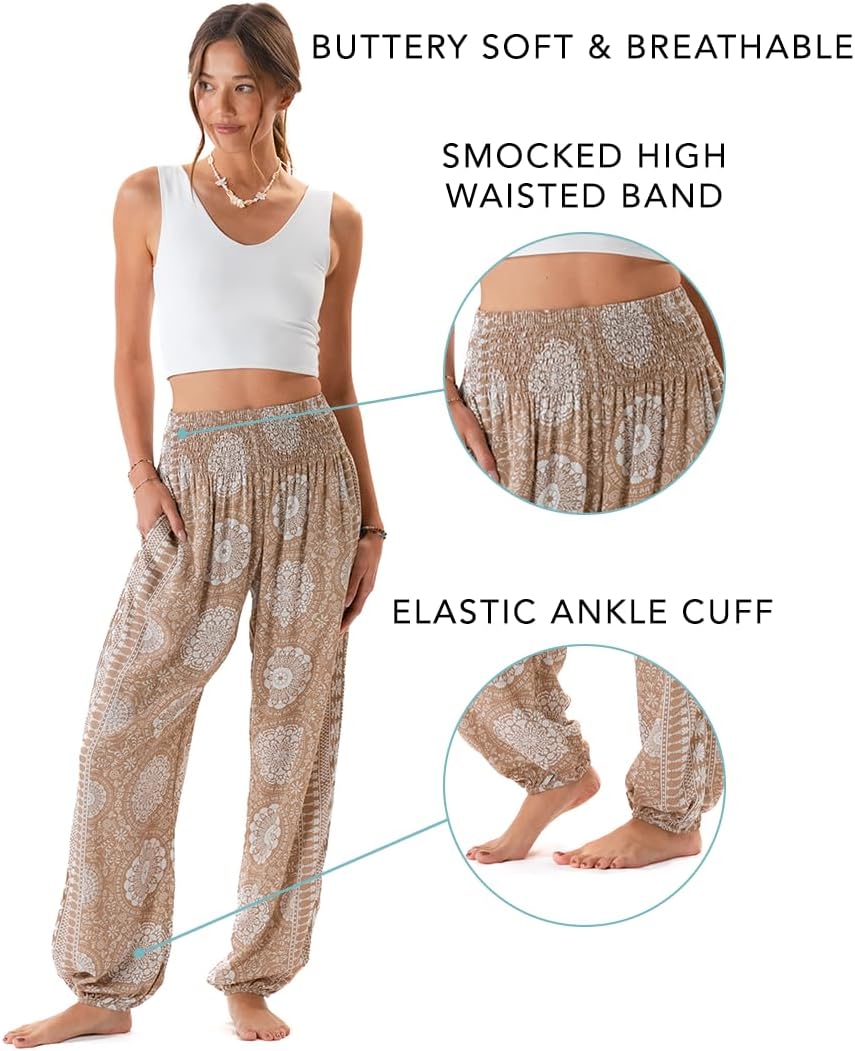 Lotus and Luna Women’s Harem Pants Thai Pants for Beach & Lounge High Waisted Flowy Boho Pants Genie Pants Yoga Pants