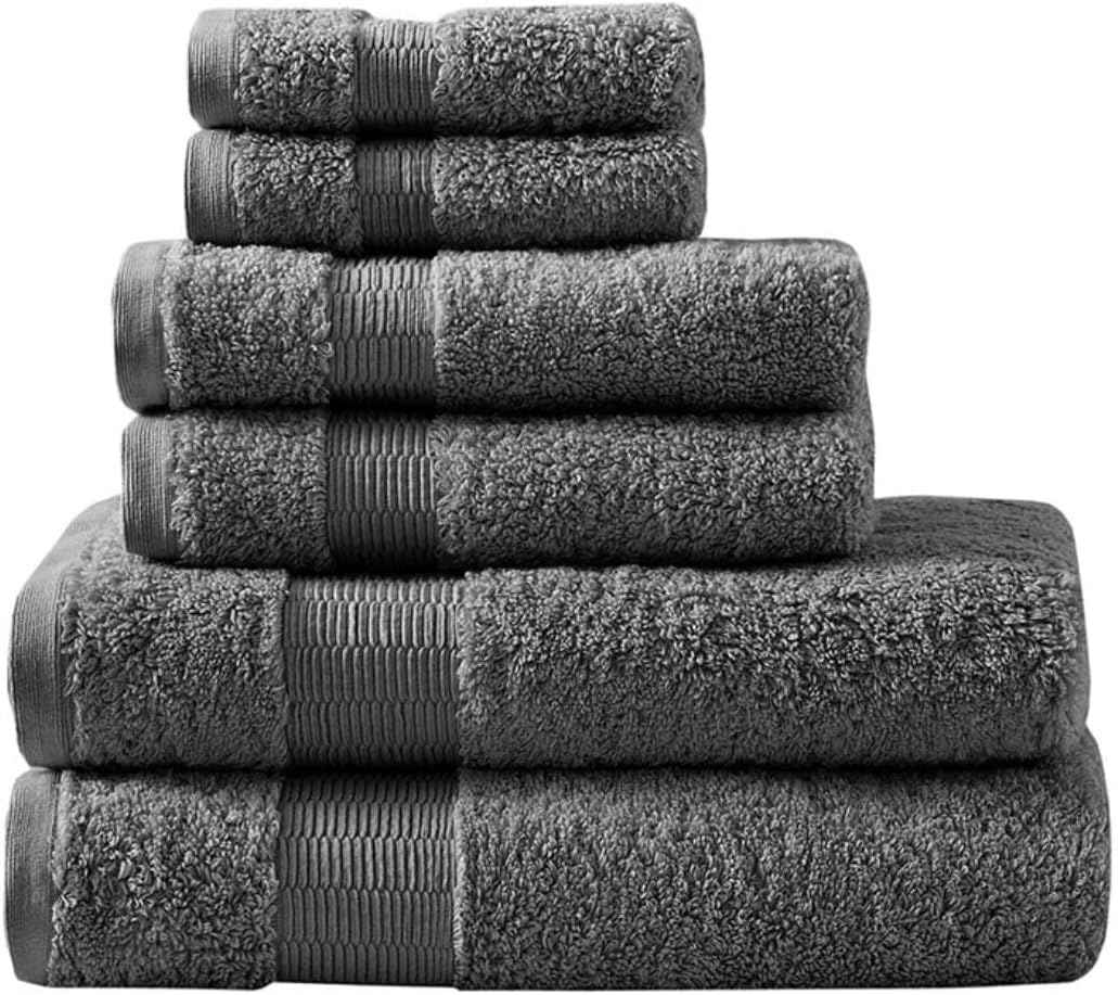 Madison Park Signature Luce 100% Egyptian Cotton Luxurious Bath Towel Set, Silky Soft, Highly Absorbent, Premium Spa Quality, Multi-Sizes, Charcoal, 6 Piece