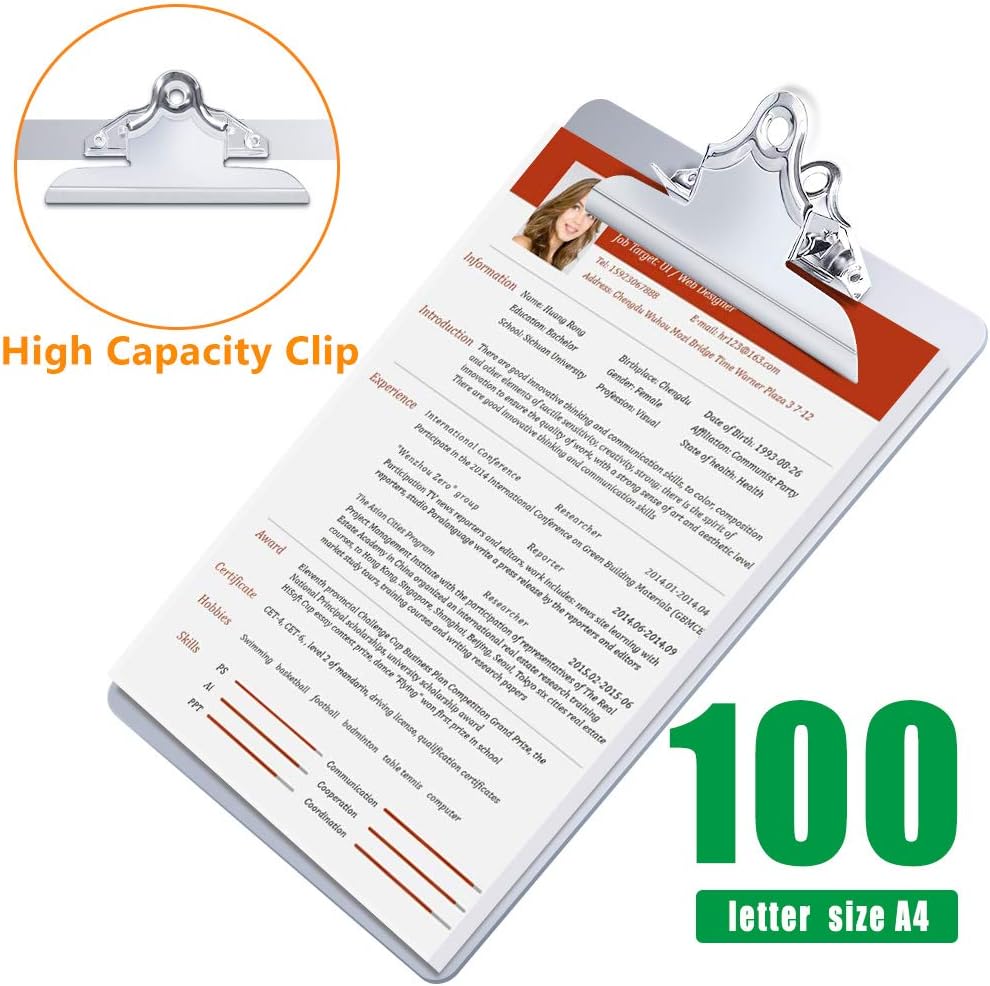 【Hangable & High Capacity Clip】: The hangable hole can improve convenience and save space.High capacity clip can clamp more than 100 A4 sized papers firmly and easily which can meet the needs of students, office worker, doctors, lawyer and engineer.