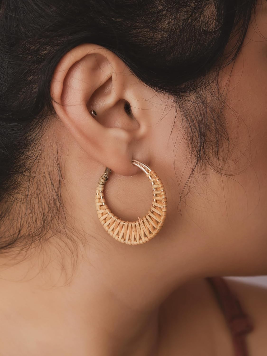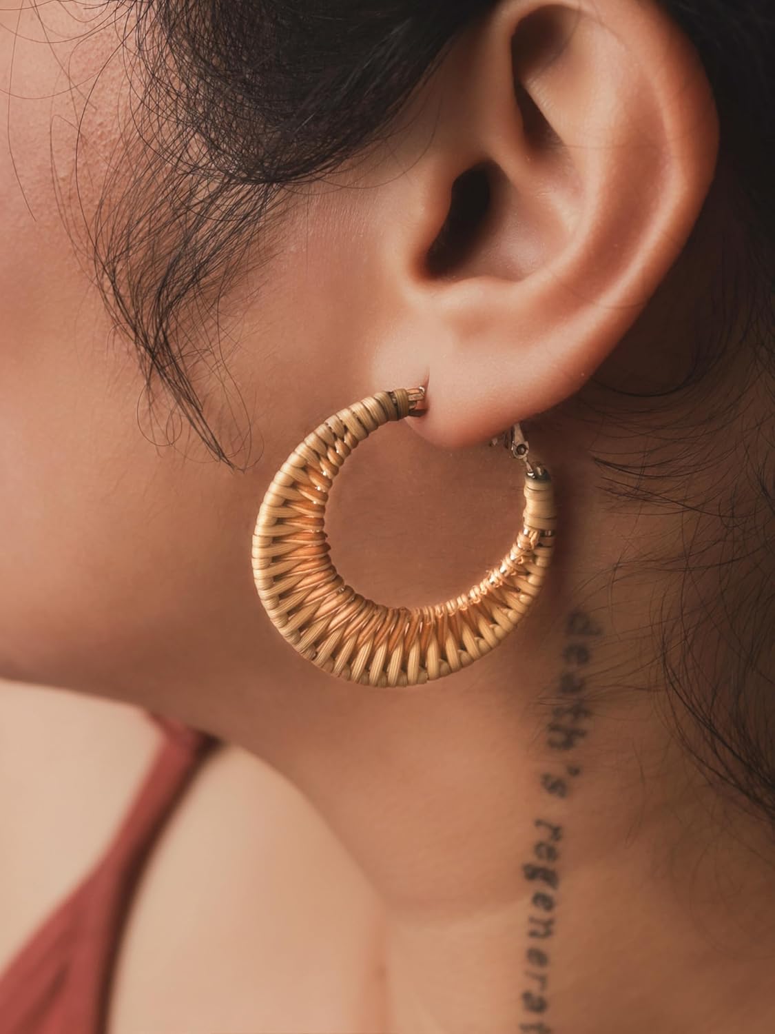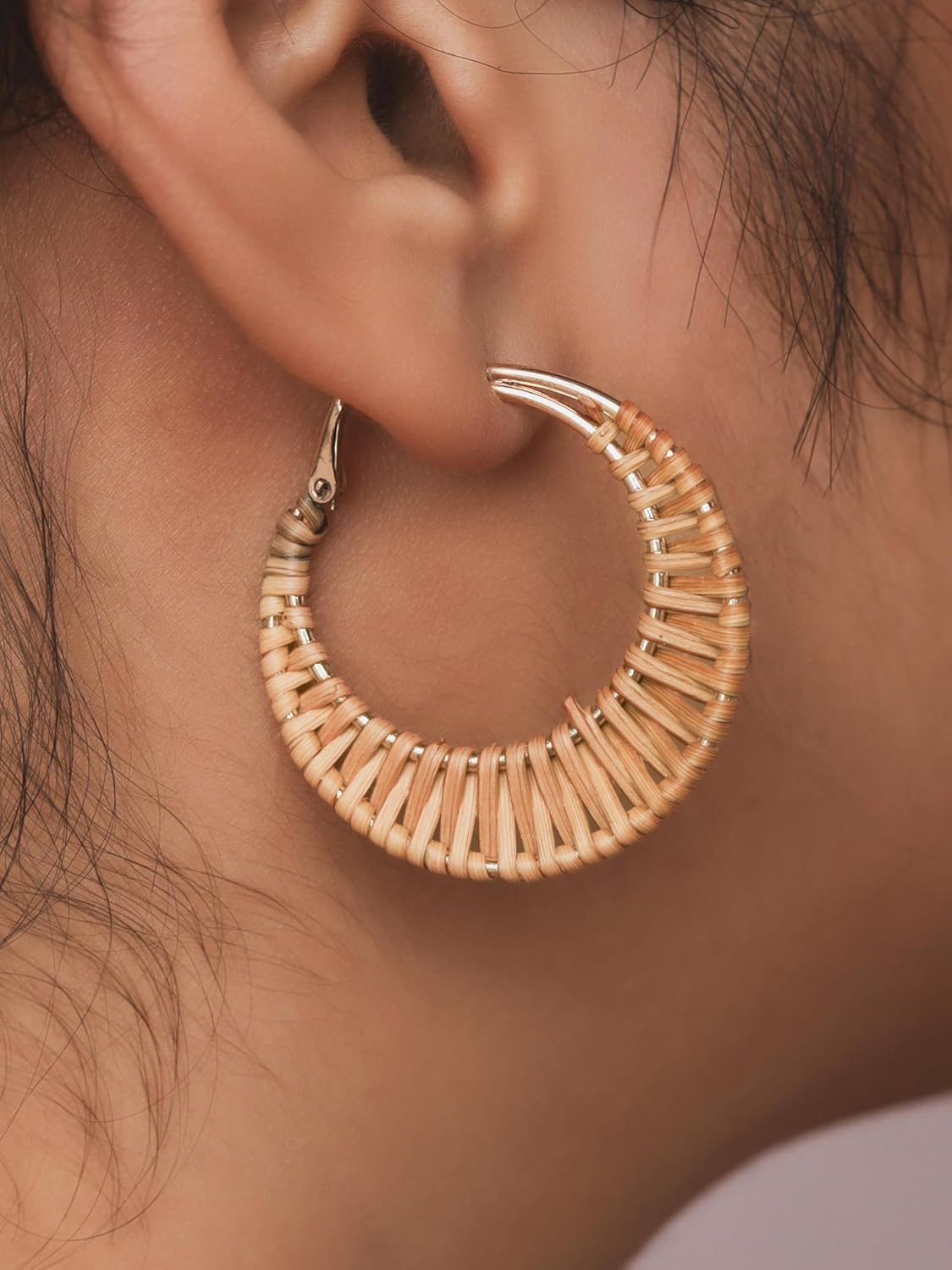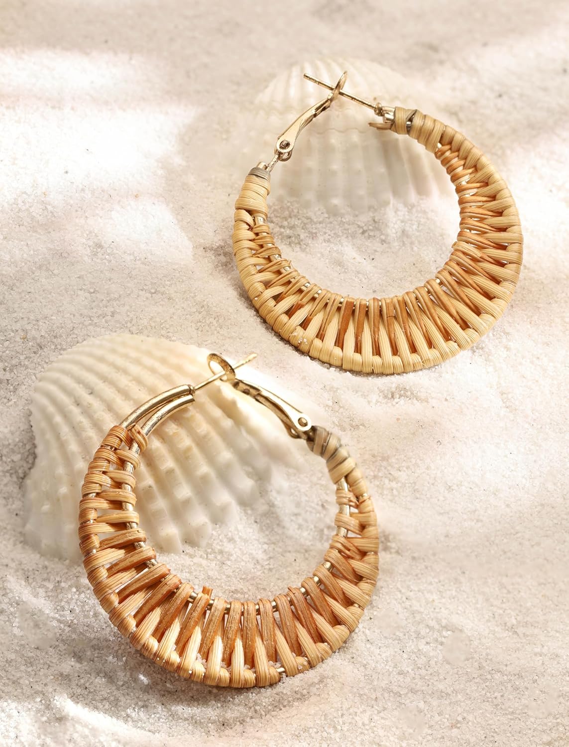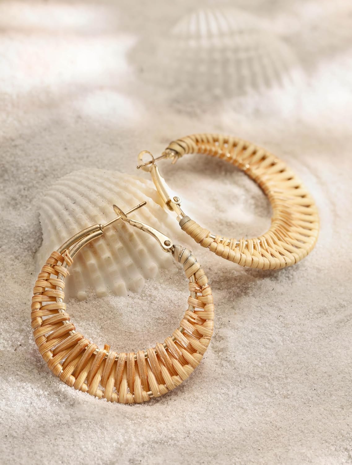 MINACHI Boho Handwoven Rattan Hoop Earrings, Bohemian Summer Beach Statement Jewelry Gift for Women (2)
