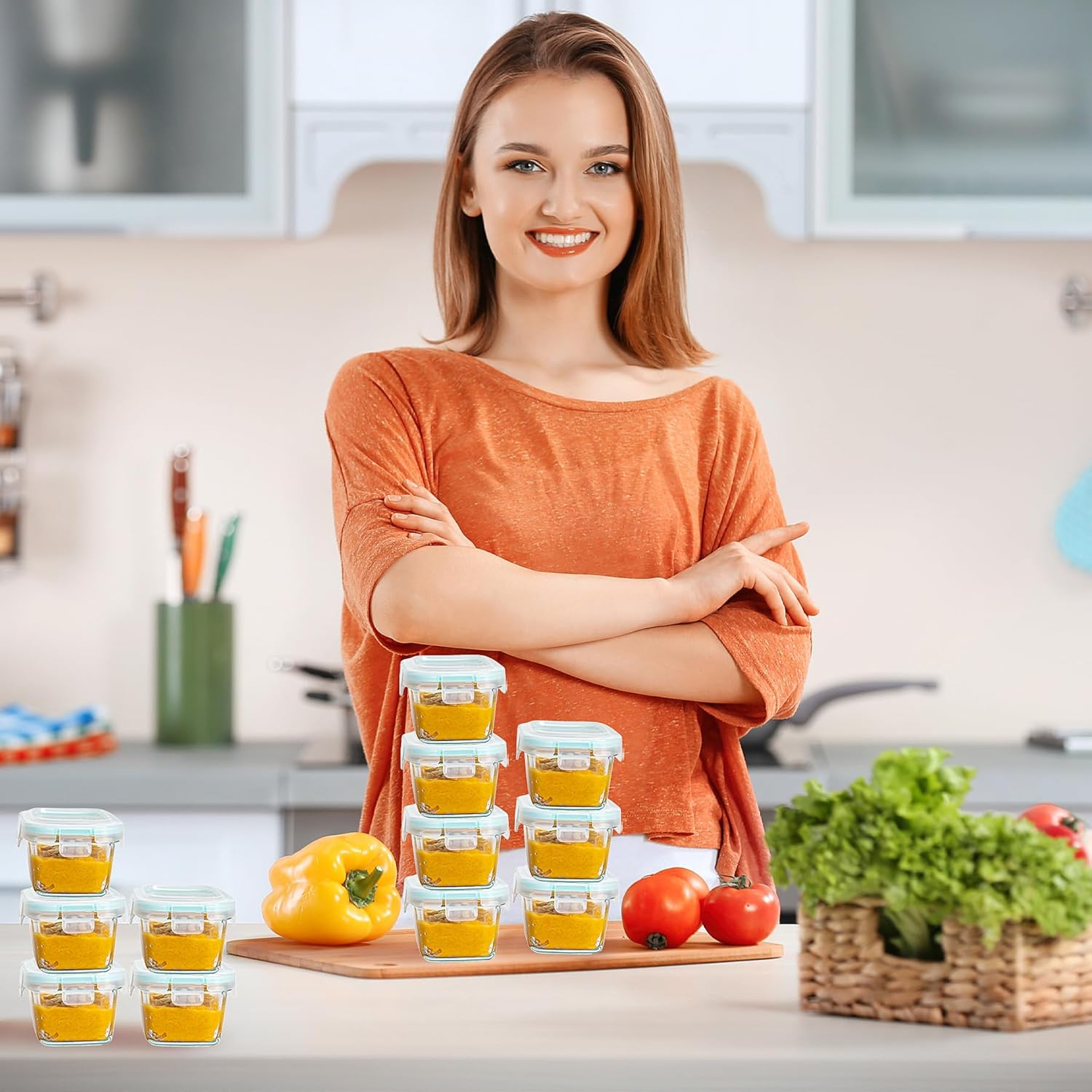 Space-Saving Design: The compact size of our mini glass food storage containers allows for efficient stacking and storage in your kitchen, helping to maximize space while keeping your pantry organized.