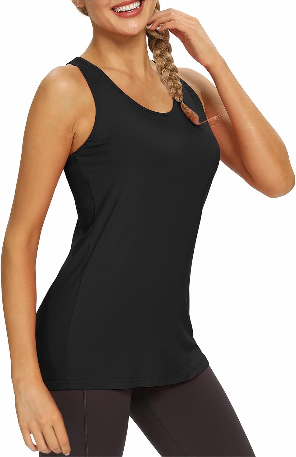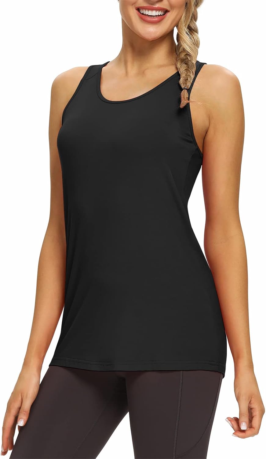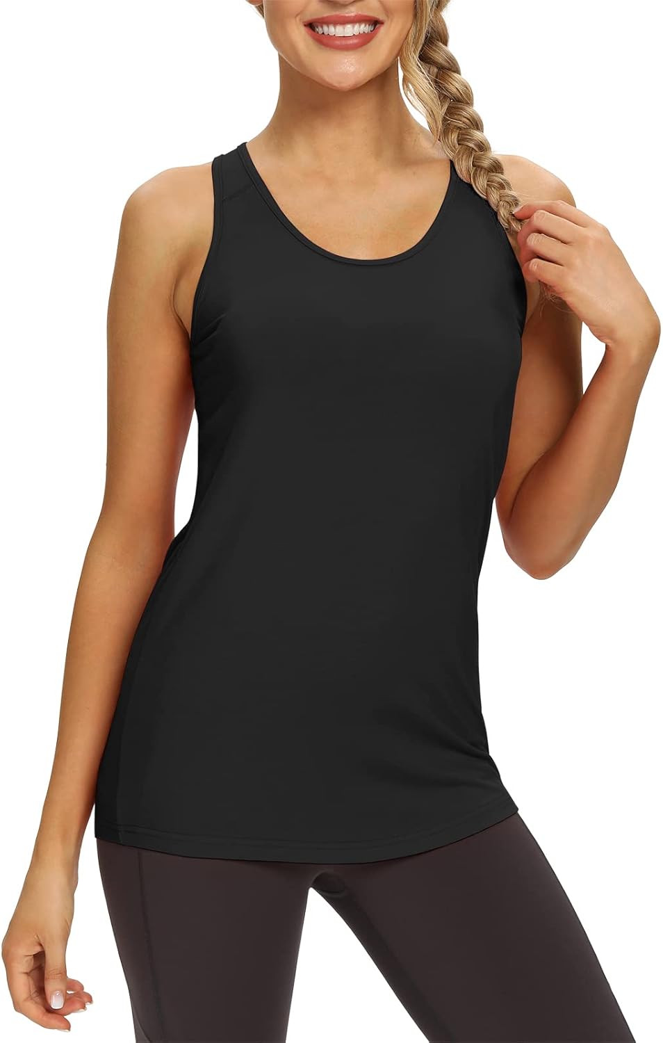 Mippo Womens Long Workout Tops Racerback Athletic Yoga Gym Tank Top Sports Tennis Shirt
