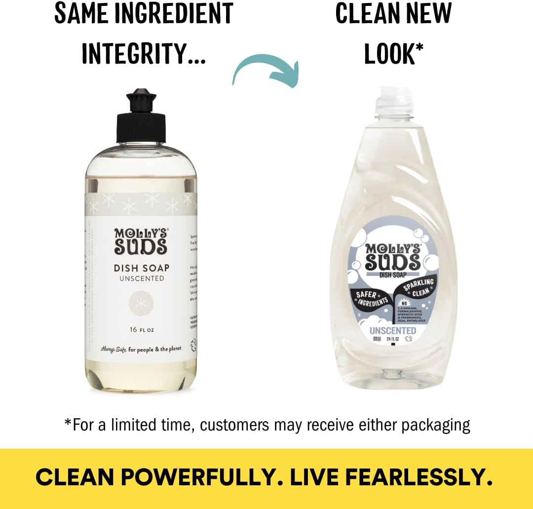 Molly’s Suds Liquid Dish Soap | Clean, Simple Ingredients | Extra Scrubbing Power | Unscented, 24 oz – 2 Pack