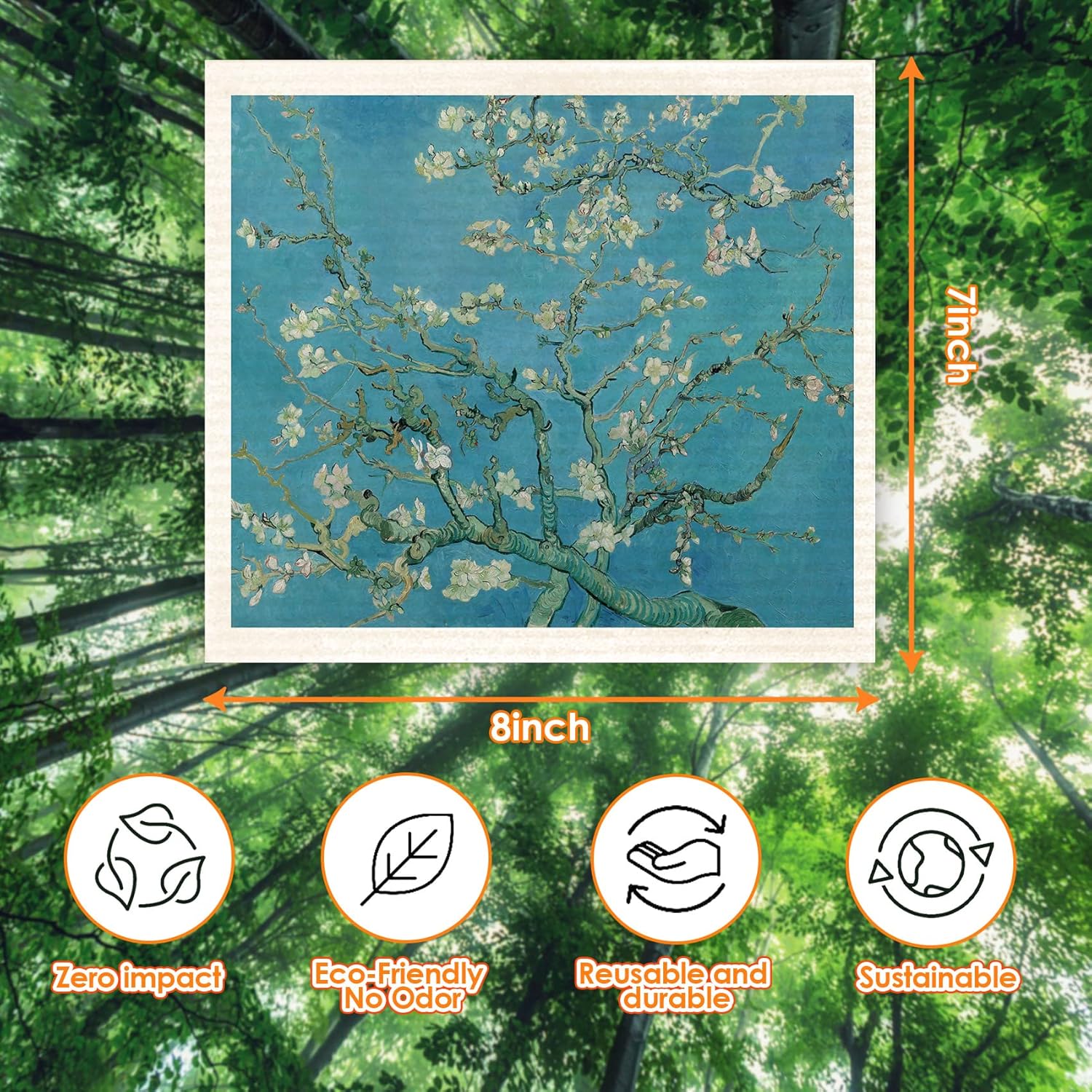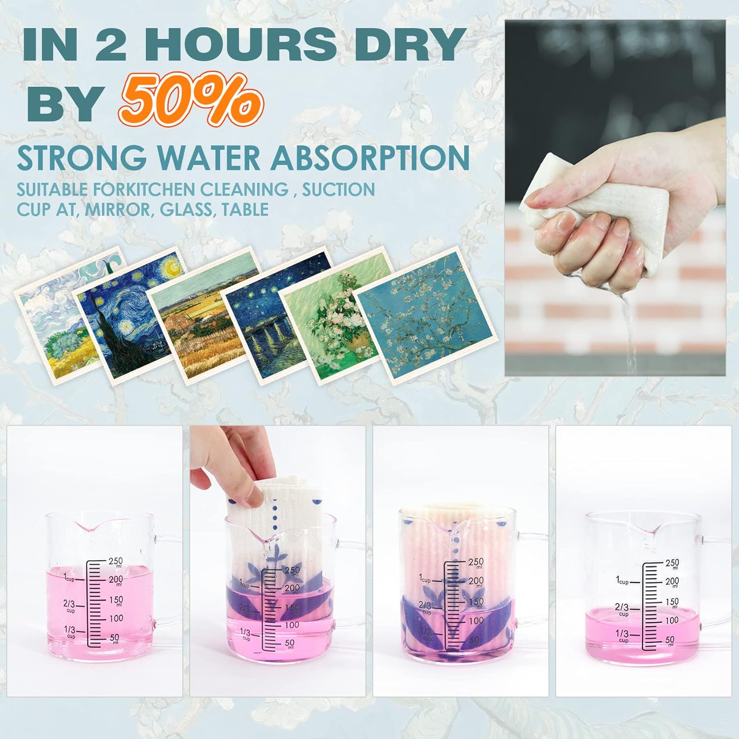 Morigins Swedish Dishcloths for Kitchen 6 Pack Van Gogh Painting Cellulose Sponge Cloths Non Scratch Reusable Paper Towels No Odor, Biodegradable and Reusable Kitchen Dish Rags