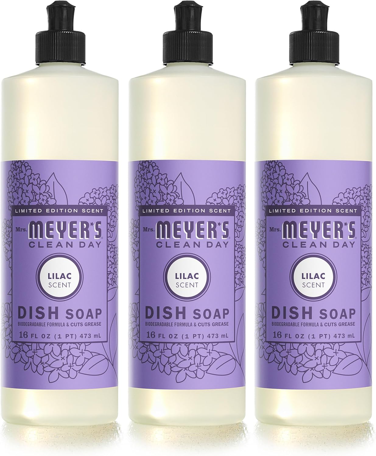 Mrs. MEYER’S Clean Day Liquid Dish Soap, Lilac Scent, 16 Ounce Bottle (Pack of 3)