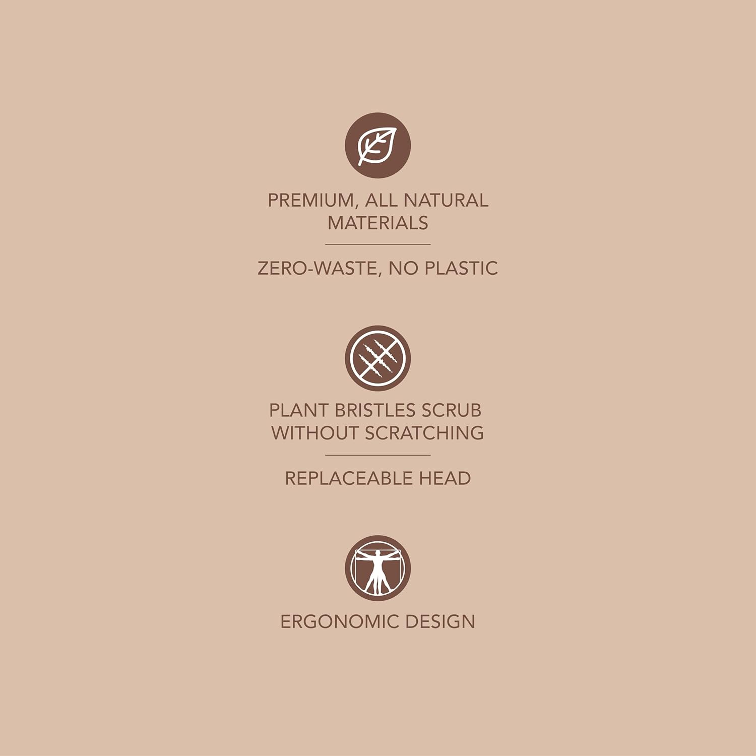 SUSTAINABLE STYLE: Our dish brushes are aesthetic enough to display in any designer kitchen, and the all-natural materials and replaceable scrubbing heads make them a handsome sink-side statement you can feel good about.