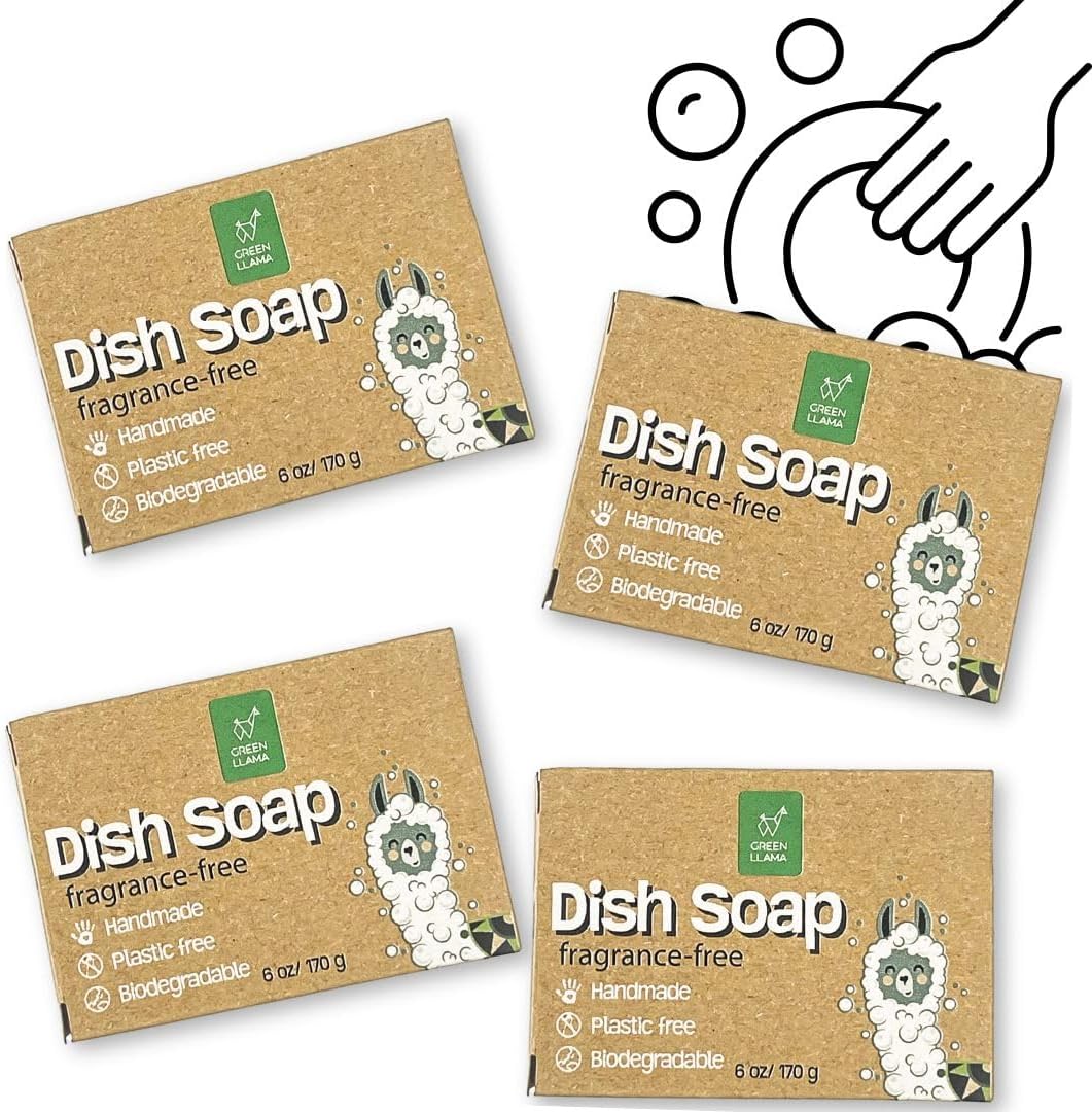Natural Dish Soap Bars – 4-Pack, Coconut Oil-Based, Fragrance-Free, Biodegradable Kitchen Soap | Eco-Friendly, Non-Toxic, Handmade Solid Dishwashing & Dishwasher Cleaner