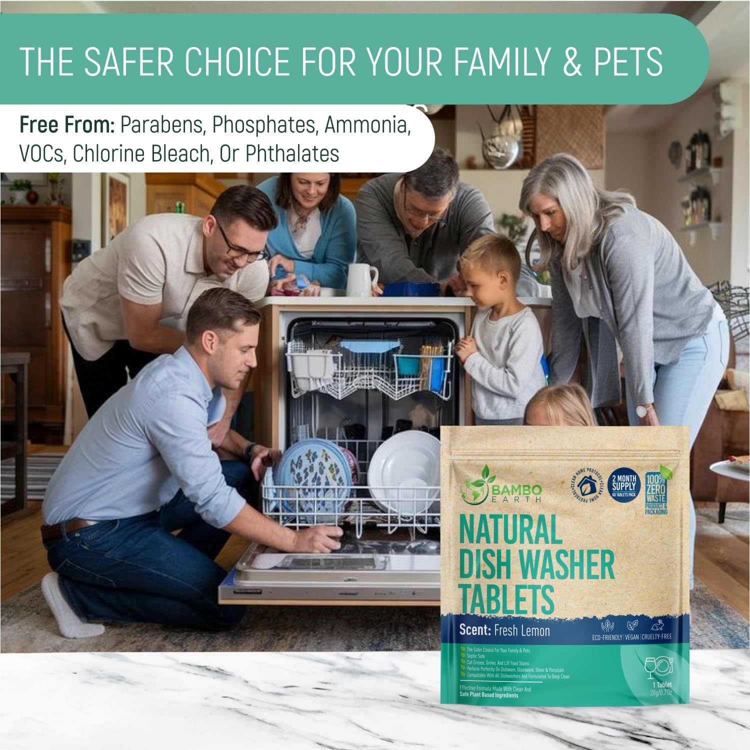 ✔️HIGHEST QUALITY AND NATURAL CARE! See the difference with BAMBOEARTH Dishwasher Tablet. Our natural formula effectively wash away stains on dishware, glassware, silver and porcelain and more.. without the need of rinse-aid while our plant and mineral based ingredients are free from parabens, phosphates, ammonia, VOCs, chlorine bleach, or phthalates making these tablets the safer Choice for your family And Pets!
