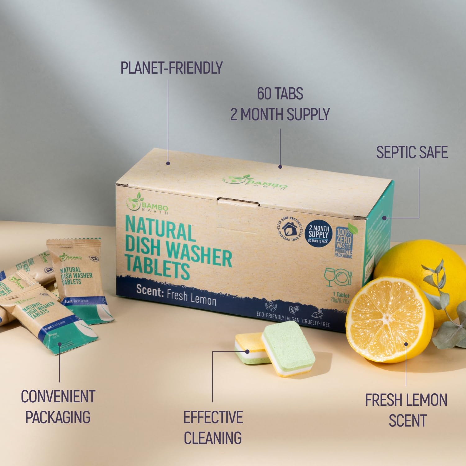 Natural Dishwasher Detergent Tablets – Plant Based Alternative Refill Pack Dishwashing Tabs – Eco-Friendly And Plastic Free Way To Cleaner Dishes – 30/60/90 Refills Dish Washer Soap Pods (60 Pack)