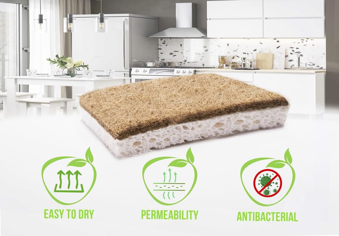 Sustainable and eco-friendly: Our natural kitchen sponge is made from biodegradable and compostable materials, making it a sustainable and eco-friendly alternative to traditional plastic sponges.