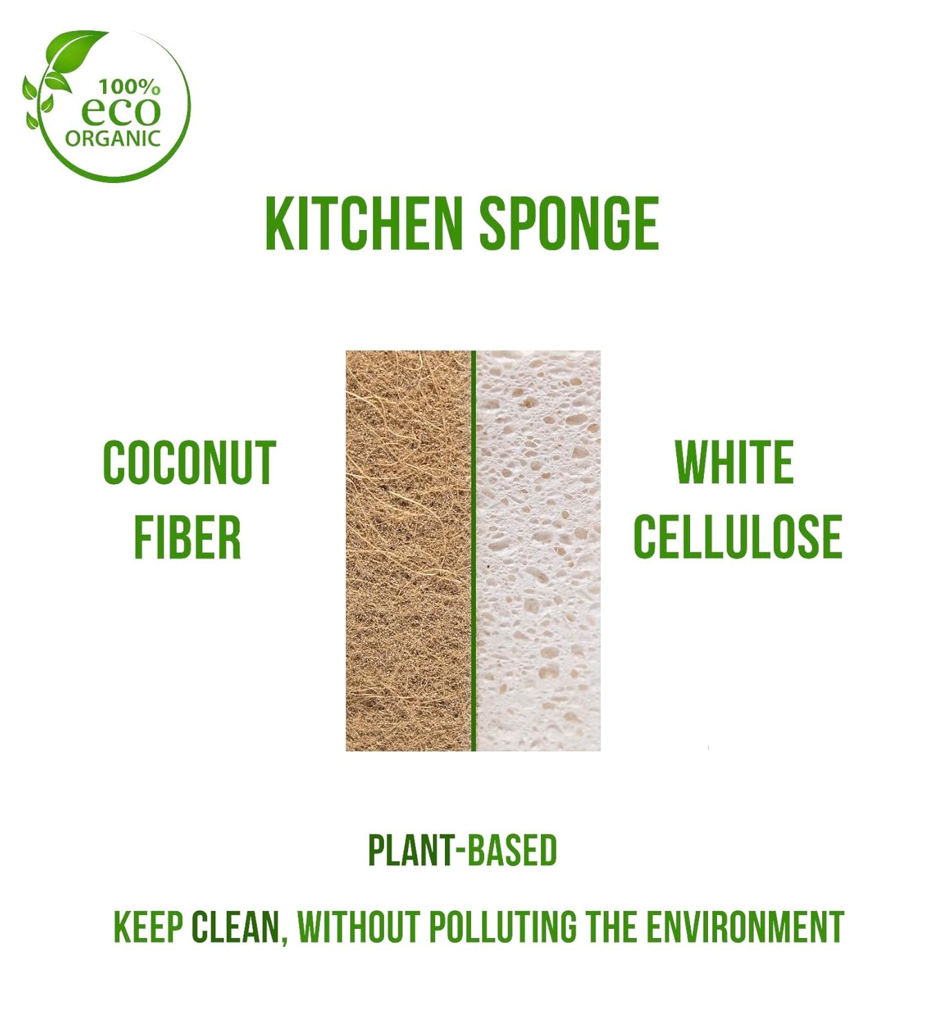 Natural Kitchen Sponges Cellulose and Coconut Pack 12