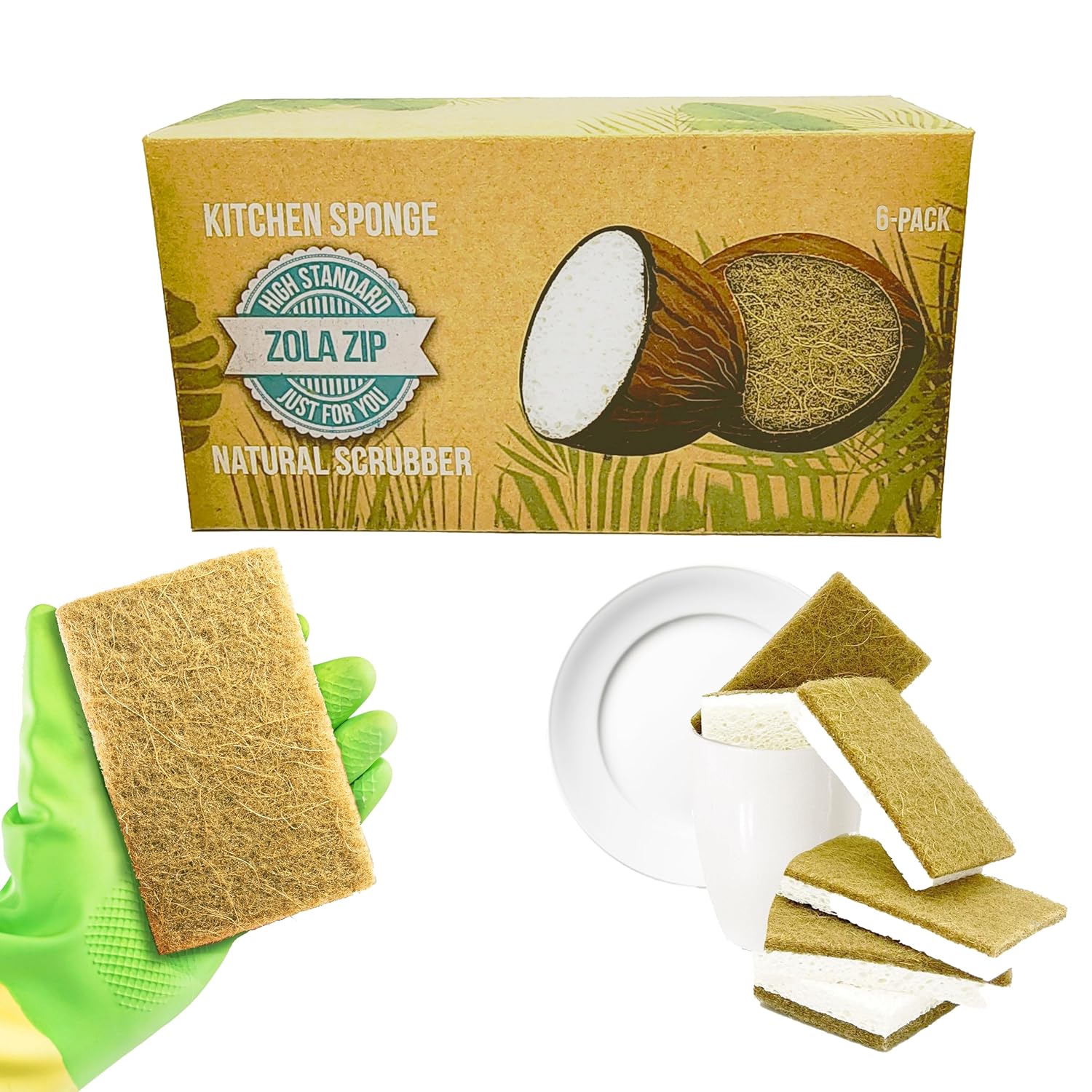 ZOLAZIP Natural Kitchen Sponges Cellulose and Coconut