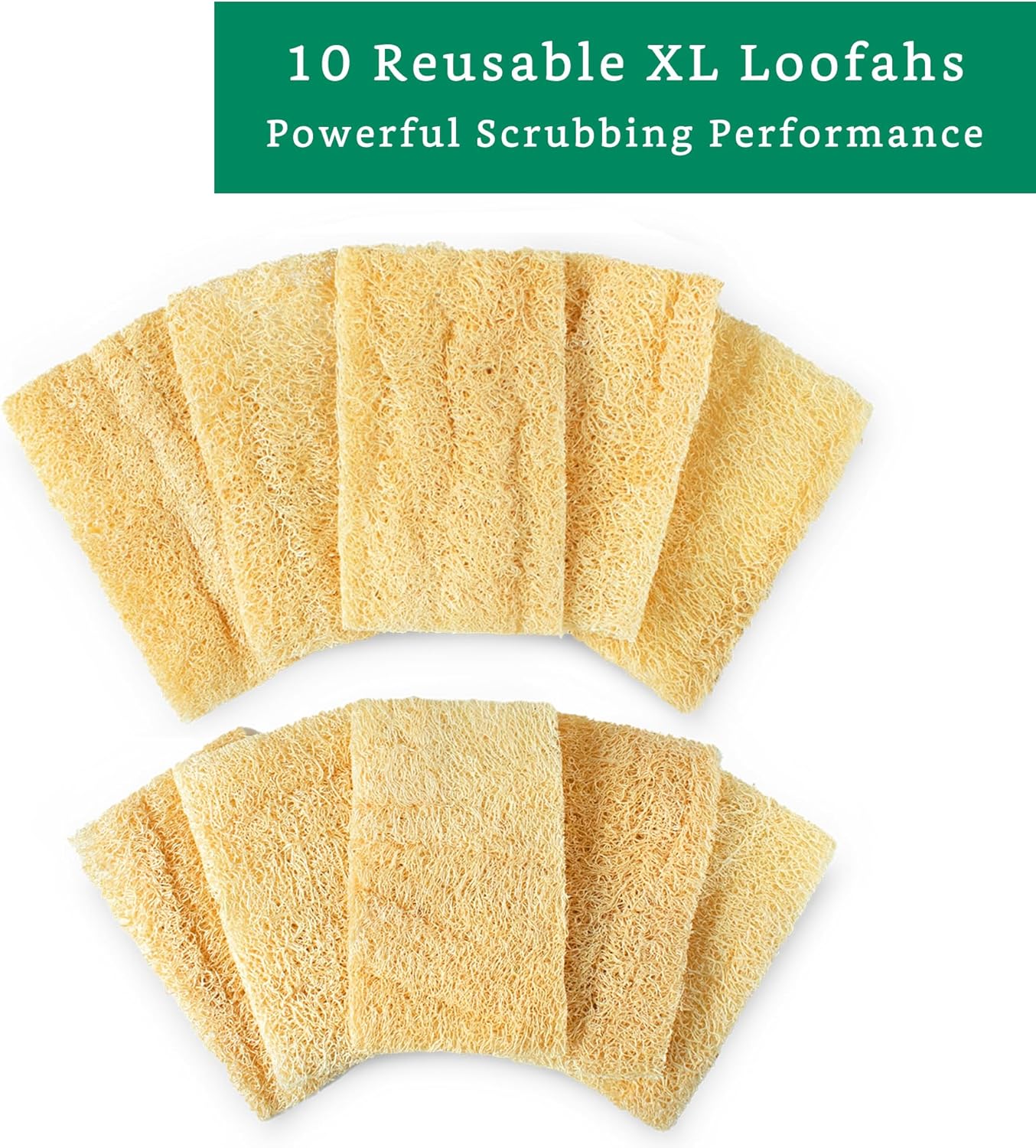 Natural Loofah Kitchen Sponge (XL – 10 Pack) – Natural Sponges for Dishes – Eco Friendly and Compostable Sponges – Plant Based Kitchen Dish Biodegradable Sponge