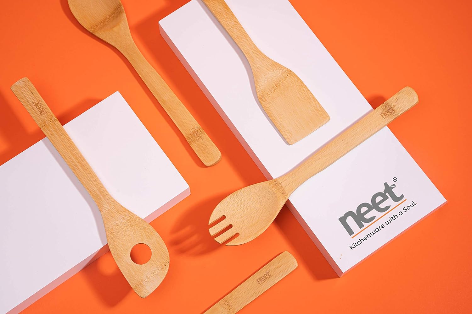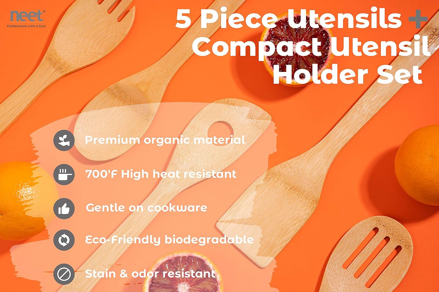 Neet Wooden Spoons For Cooking 6 Piece Organic Bamboo Utensil Set With Holder Wood Kitchen Utensils Spatula Spoon For High Heat Stirring In Nonstick Pots & Pans Quality Gift & Everyday Use