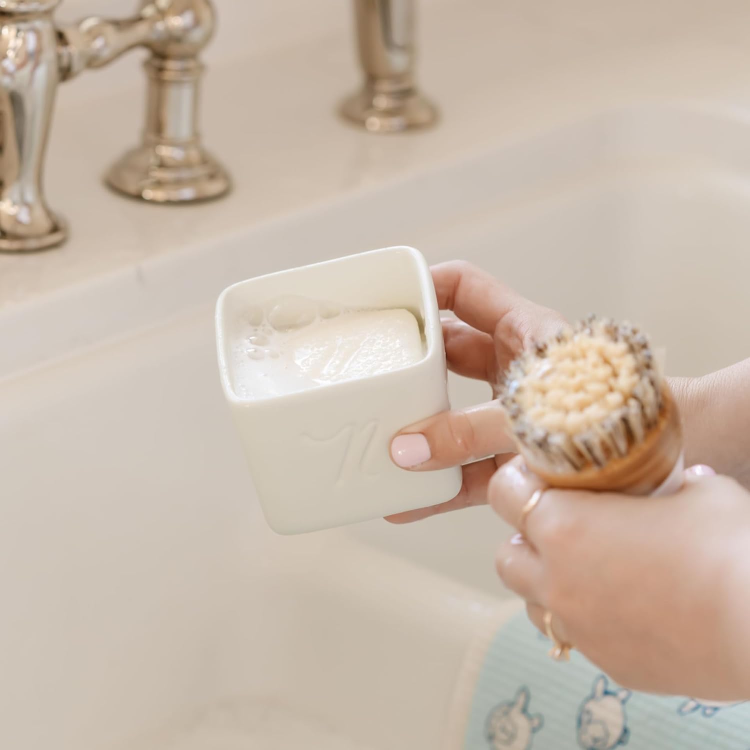 Compact, Efficient & Long-Lasting – Each ceramic container of Dish Butter lasts as long as three bottles of liquid dish soap, helping you cut down on packaging and repeat purchases. Its concentrated formula tackles stuck-on food with just a swipe. Wet your brush, cloth, or sponge, give it a dab, and clean with ease. It’s an effective, no-fuss solution for anyone looking to streamline their kitchen routine.