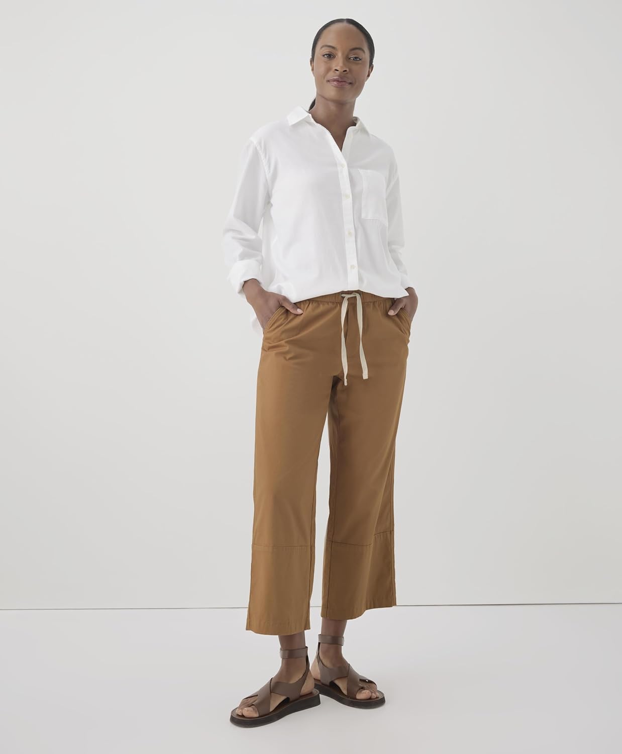 Brand Pact Product Name Organic Cotton Women’s Daily Crop Pants Fabric Composition 97% Organic Cotton, 3% Elastane – Soft, breathable, and stretchable for daily comfort Garment Type Slim Fit Crop Pants Rise Style Mid Rise – Sits comfortably at the natural waist Leg Style Boot Cut Crop – Slight flare below the knee for a balanced silhouette Fit Type Slim Fit – Tailored and flattering through the hips and thighs Closure Type Pull-On / Elasticized (if applicable – confirm from product images) Design Features Clean cropped hem, Slim tailored silhouette, Stretchy fabric for ease of movement Material Features Breathable, stretch-infused twill for lasting comfort Care Instructions Machine wash cold. Tumble dry low. Do not bleach. Cool iron if needed Ideal Use Office wear, everyday casual, weekend outings, errands Season All-Season – Especially suited for spring, summer, and fall wear Sustainability Made with sustainable, GOTS-certified organic cotton Country of Origin Imported Color Options Typically offered in a range of neutral and seasonal colors; availability may vary based on size and inventory