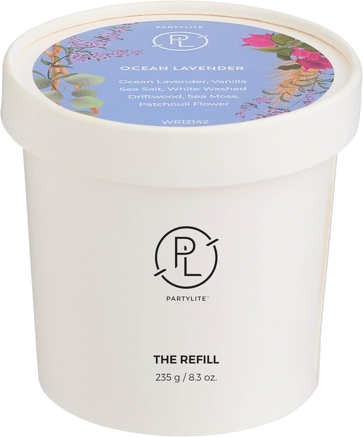 PartyLite Ocean Lavender Scented Candle Refill, Notes of Vanilla Sea Salt, Driftwood, Sea Moss, Patchouli & Eucalyptus, 10oz 1-Wick Aromatherapy, 40 Hours of Luxury Fragrance, Sustainable Soy Wax