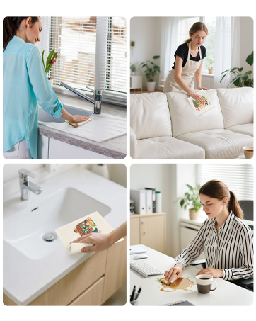 【Super Absorbent & Fast Drying】Dish cloths absorb up to 15 times more water than their own weight, making it easy to handle spills; and they dry faster than ordinary rags, keeping them fresh. Reusable paper towels are suitable for use on any surface such as cutlery, kitchenware, countertops, glass, ceramics and stainless steel, greatly improving the efficiency of house cleaning.