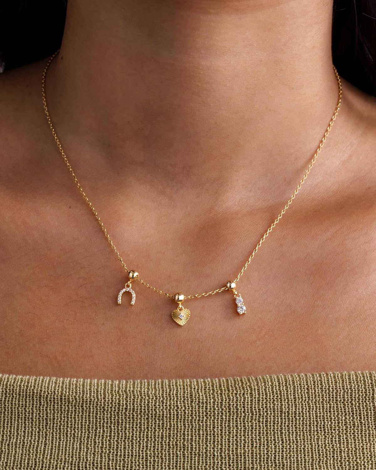 Elevate your everyday style with these irresistible gold necklace charms that are about to become your new accessory obsession! Our dainty and chunky charm necklaces for women blend trendy design with versatile wearability, perfect for beach days, summer adventures, or adding a touch of sparkle to your everyday look. Crafted with care, this dainty gold charm necklace features a hypoallergenic adjustable chain that ensures both comfort and style. The carefully curated cubic zirconia pendant brings a luxurious shine that catches the light and turns heads, making it the ultimate women’s charm necklace gold enthusiasts will adore. Whether you’re craving a coastal charm necklace vibe or looking for a charms necklace that speaks to your unique personality, this piece delivers. From shell charm necklace elements to heart and religious-inspired pendants, each charm tells a story. Mix and match these gold charms for necklaces to create a look that’s entirely your own. Express yourself without saying a word with this beachy charm necklace that’s equal parts dainty and cute. It’s not just a necklace – it’s a statement. Ideal for layering or wearing solo, this summer charm necklace will quickly become your go-to accessory for any occasion. Don’t settle for ordinary. Embrace the extraordinary with a necklace charms gold collection that’s as unique and dynamic as you are. Your perfect accessory adventure starts here!