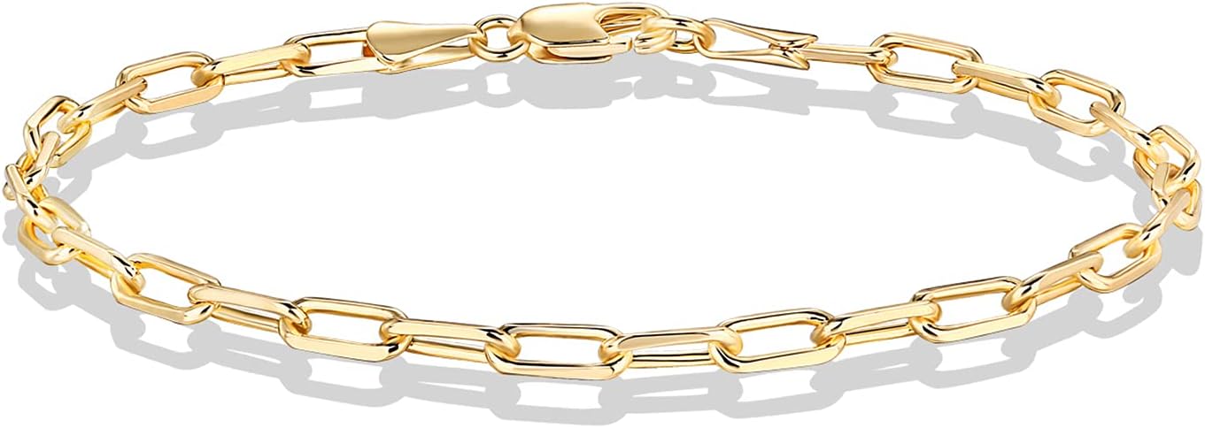 PAVOI 14K Gold Plated Paperclip/Curb/Figaro Chain Adjustable Bracelet for Women