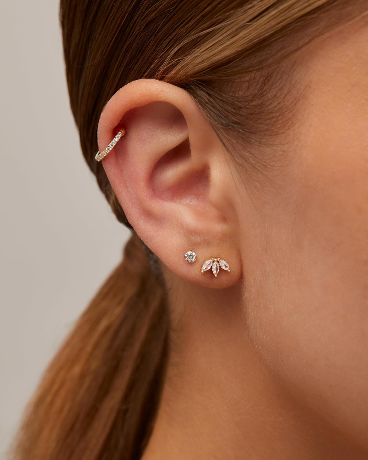 CZ Half Huggie Studs