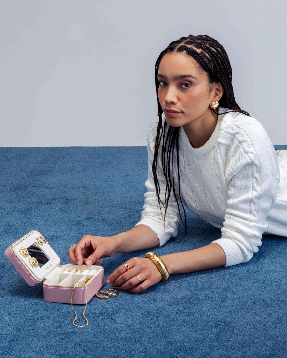 Made with premium faux leather PU, this jewelry travel case for women feels as luxurious as it looks, with 0.8mm thickness for a sturdy yet stylish finish. The soft interior is gentle on delicate pieces, and the built-in mirror adds extra convenience. Perfect as a gift or a personal treat, this mini travel jewelry organizer ensuring your gold necklaces, earrings, rings and bracelets safe, organized and always travel-ready.